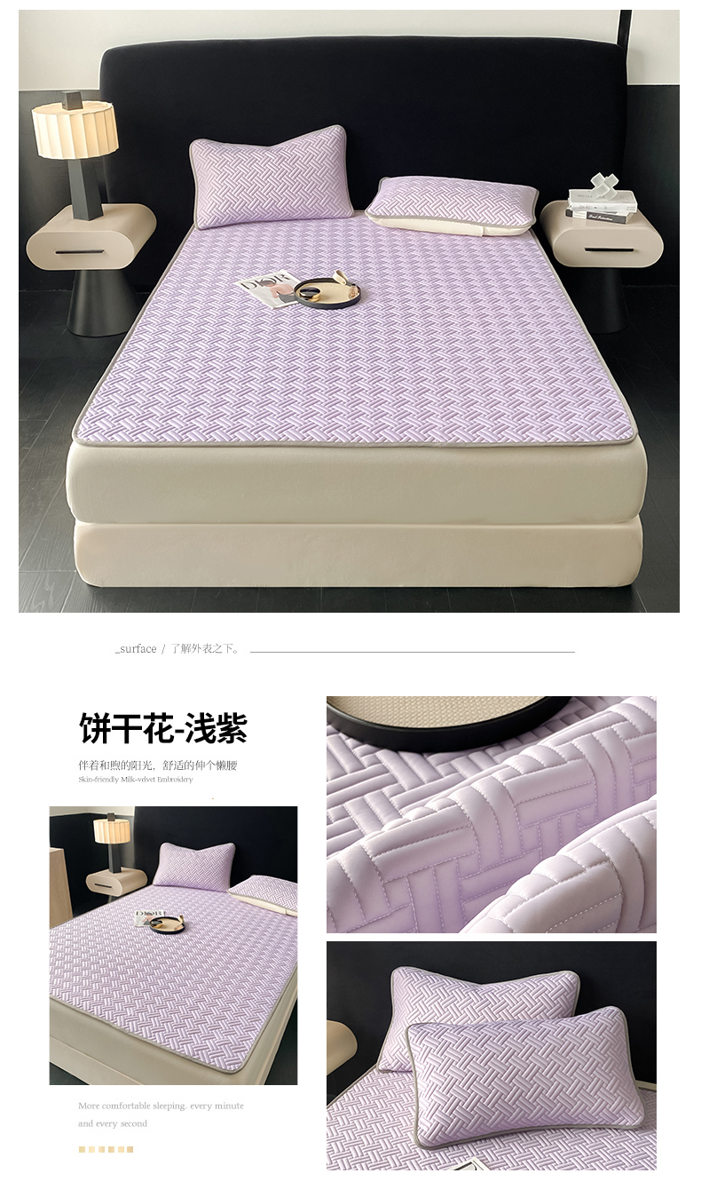 商品名称:欧邦 2025新款加厚纯色凉席四件套--凉席三件套 饼干花-浅紫
