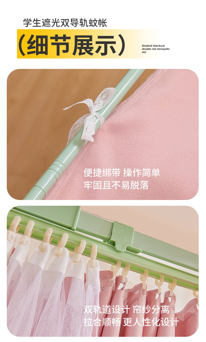 商品名称:(总)艾晶美2025新款双层学生上下铺蚊帐精密面料轨道蚊帐