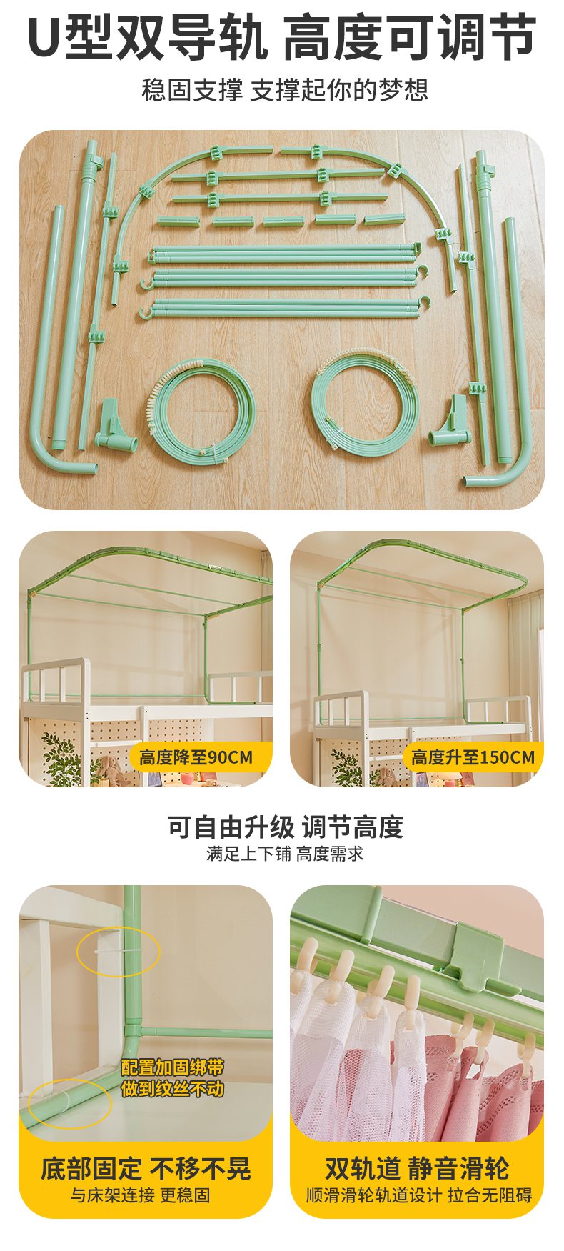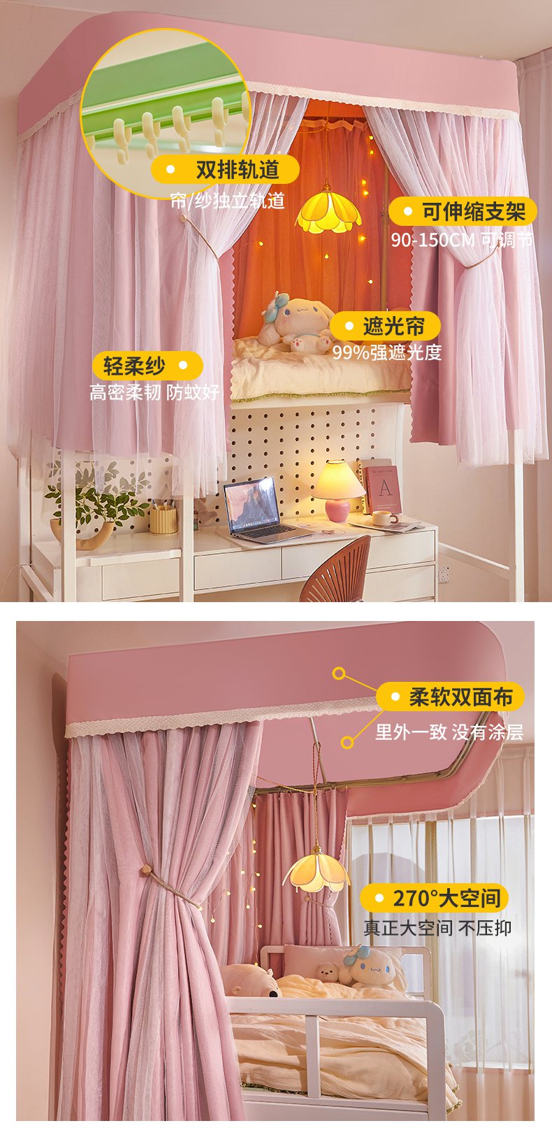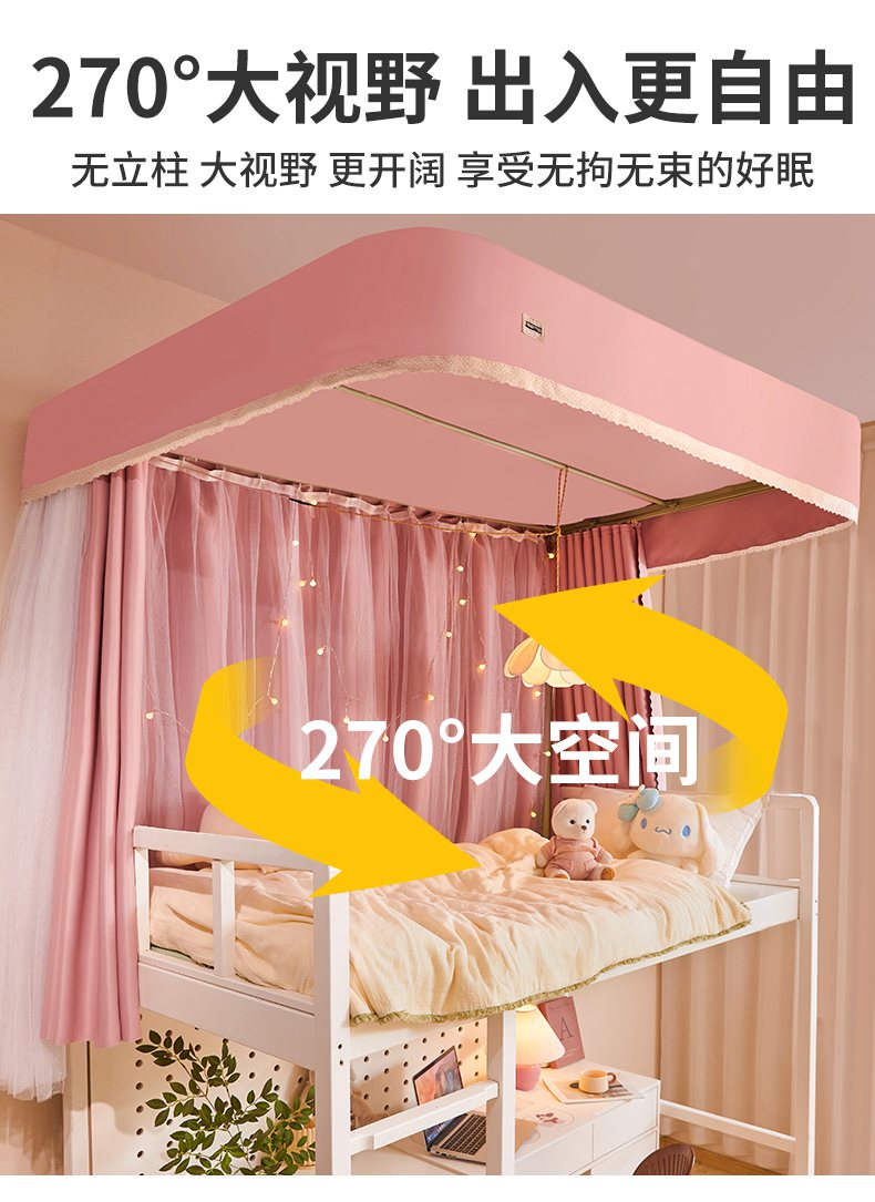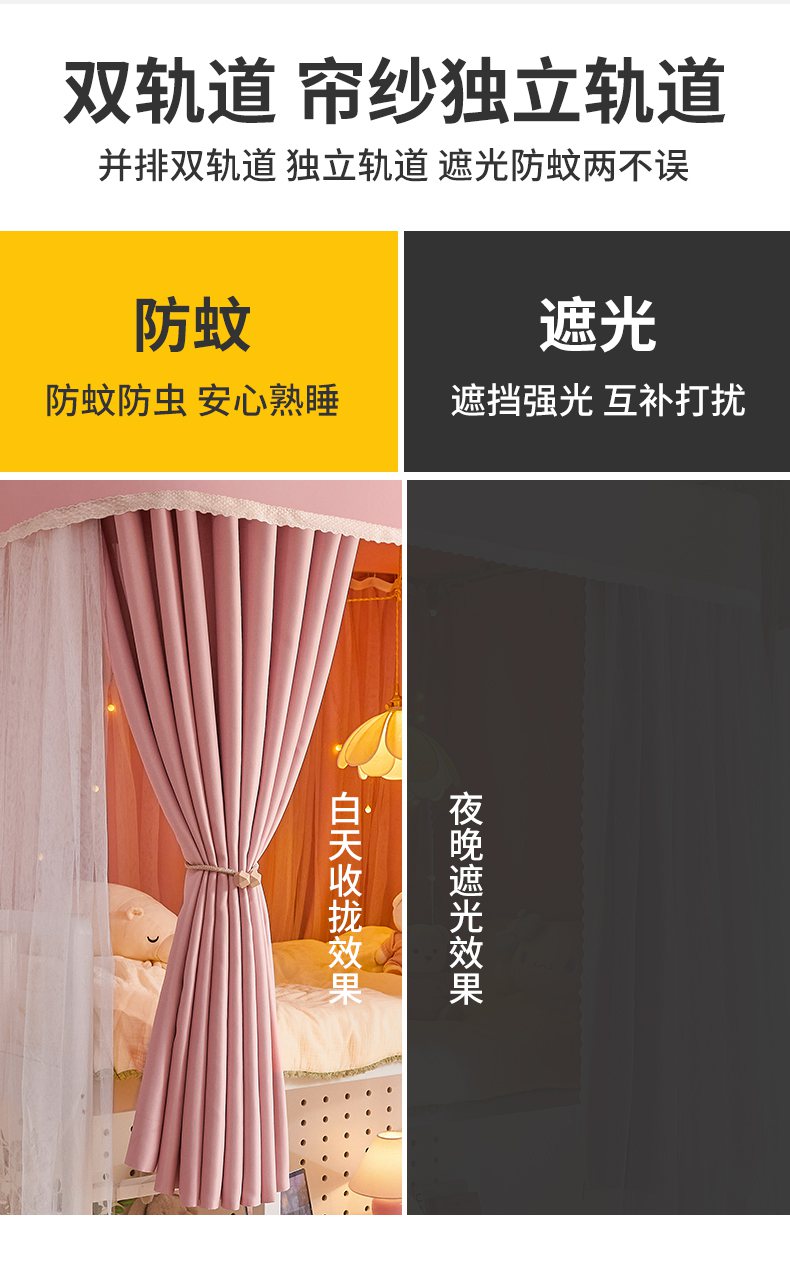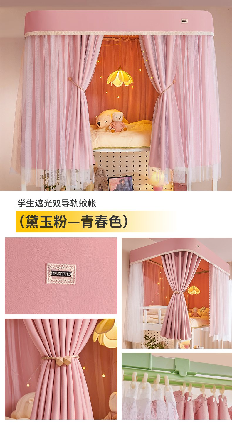 (总)艾晶美2025新款双层学生上下铺蚊帐精密面料轨道蚊帐,黛玉粉-青春色,高级灰-气质色,米卡其-百搭色,深灰蓝-神秘色