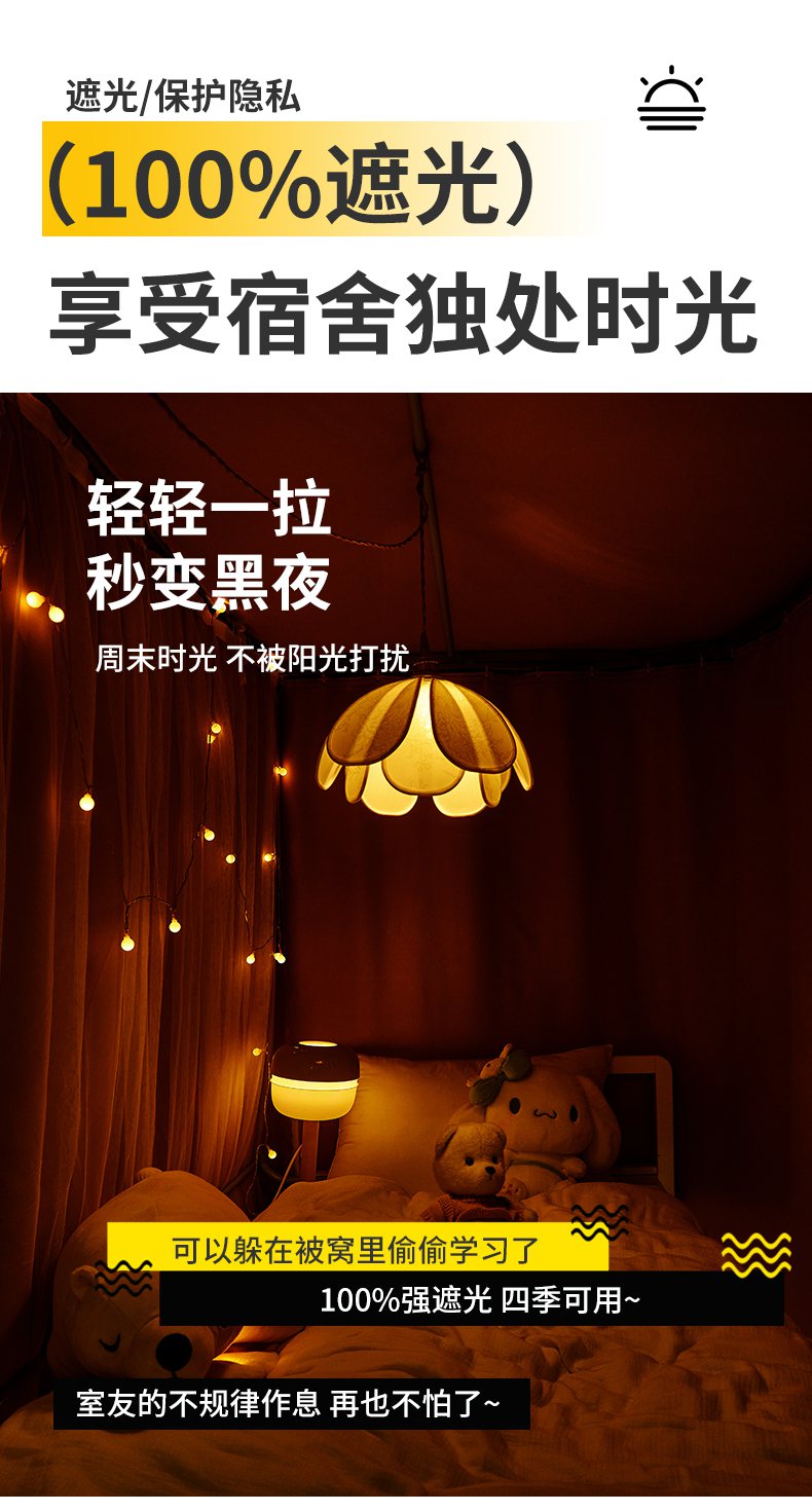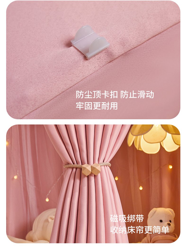 (总)艾晶美 2025新款学生全包一体式窗帘布遮光学生蚊帐,裸粉,灰蓝,卡其,烟灰,另加卡通配饰