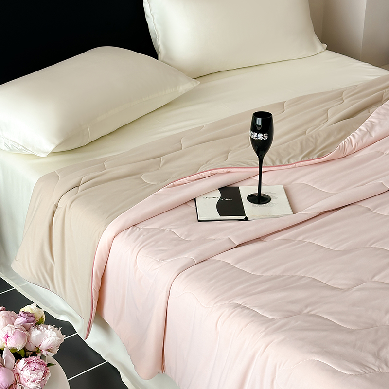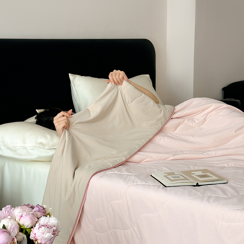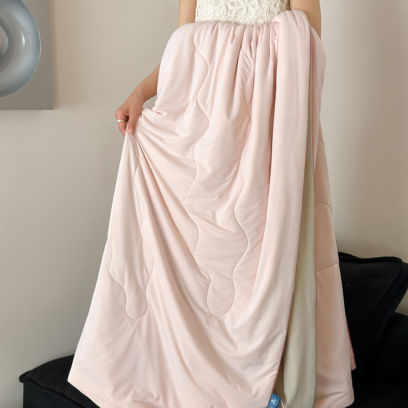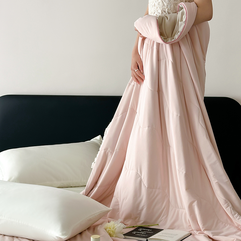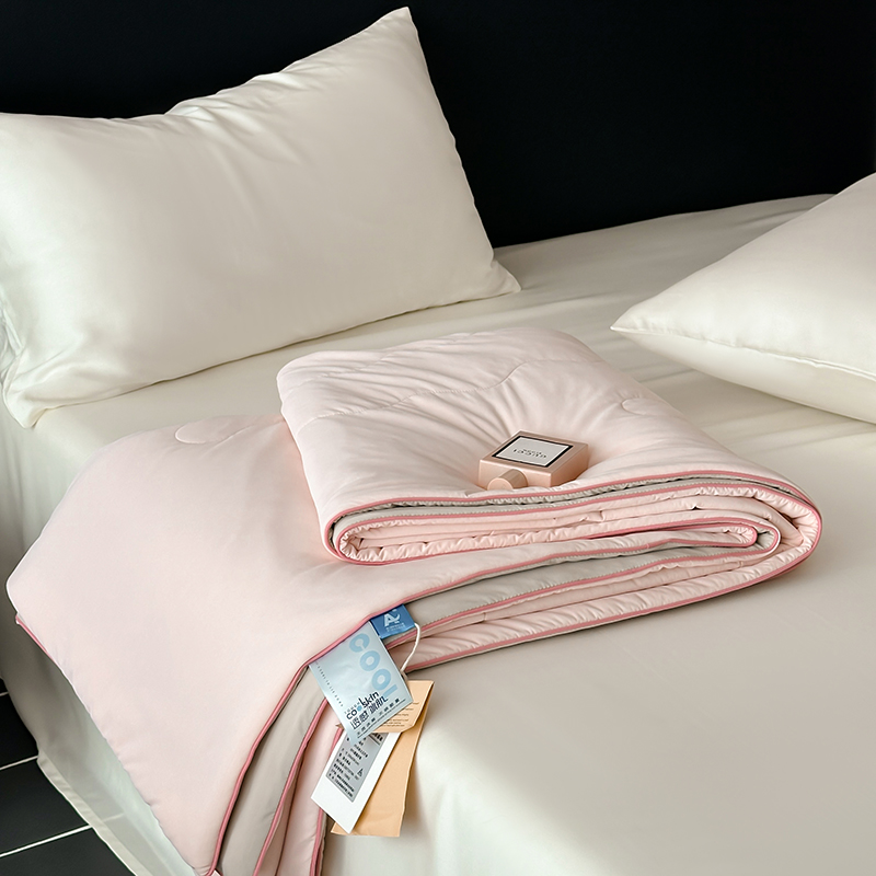 时年家纺 2025新款升级版180克高定即刻凉感夏被 甜杏粉
