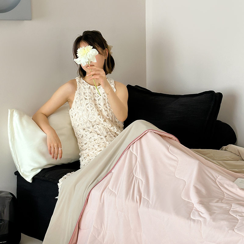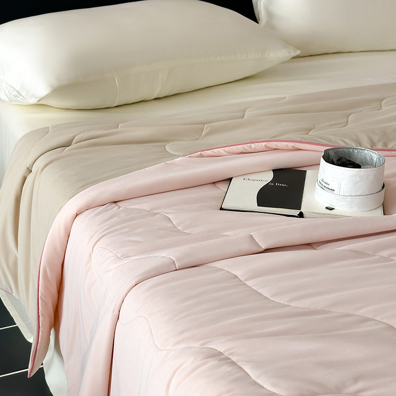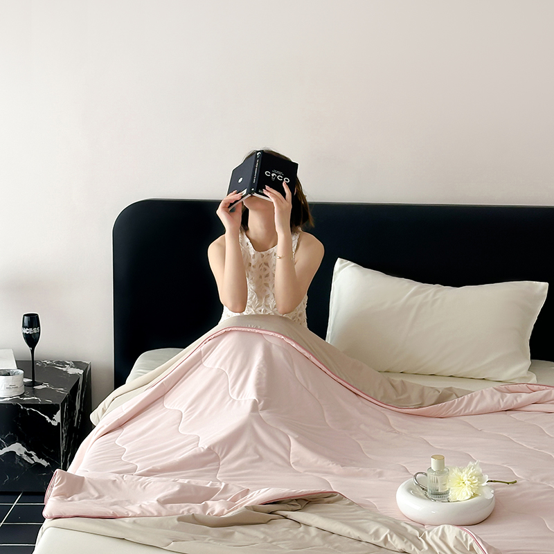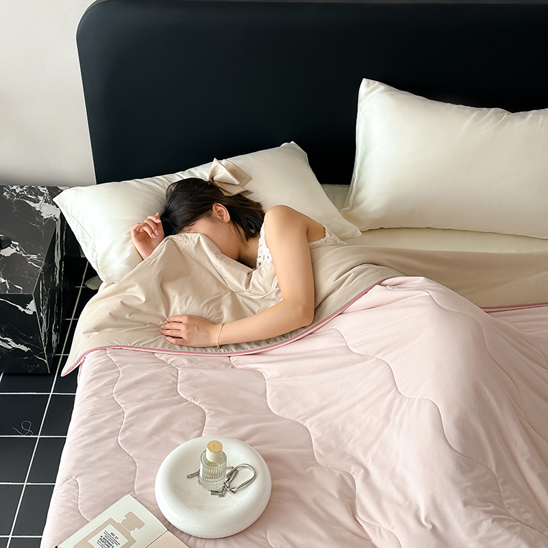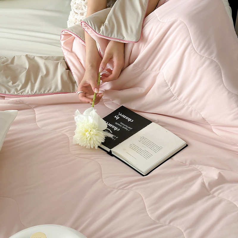 时年家纺 2025新款升级版180克高定即刻凉感夏被 甜杏粉