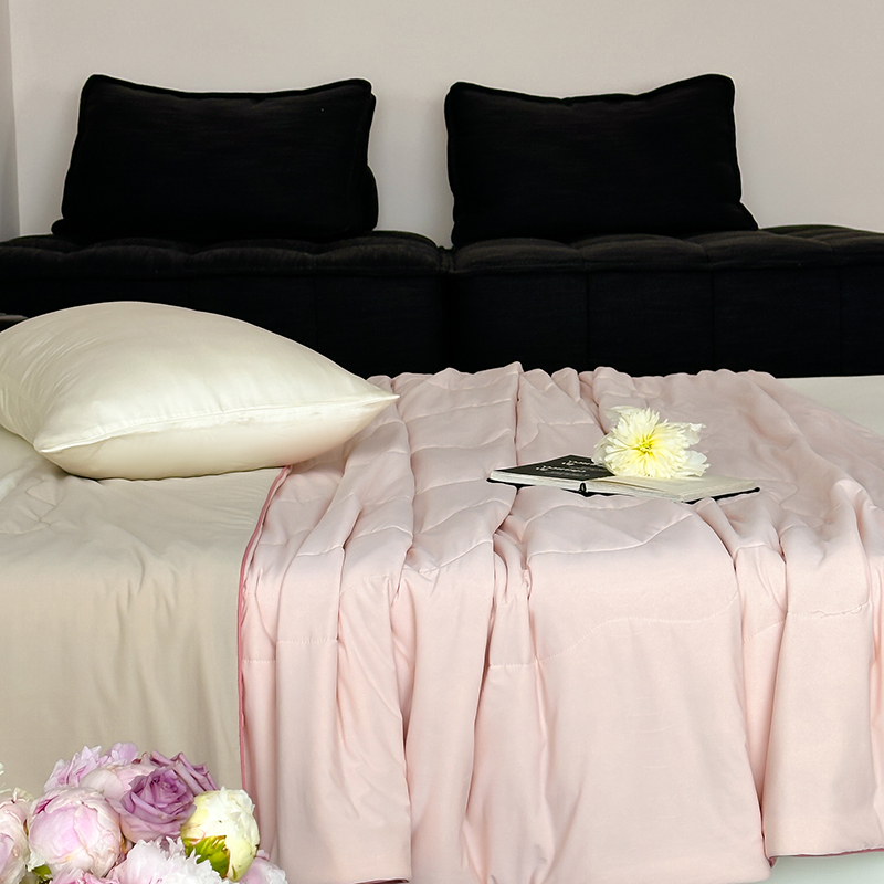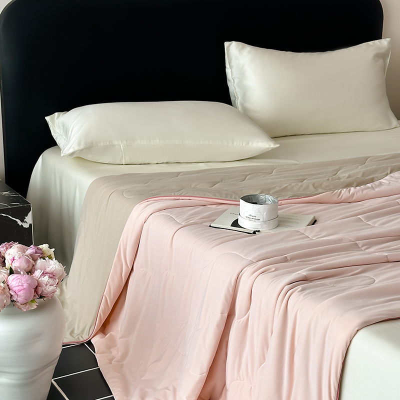 商品名称:时年家纺 2025新款升级版180克高定即刻凉感夏被 甜杏粉