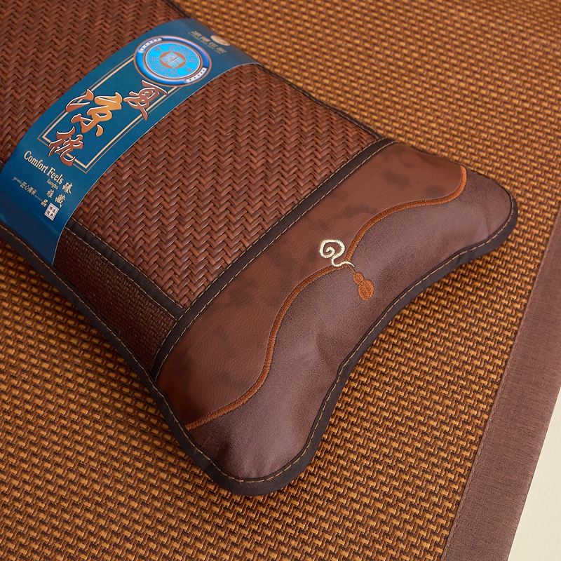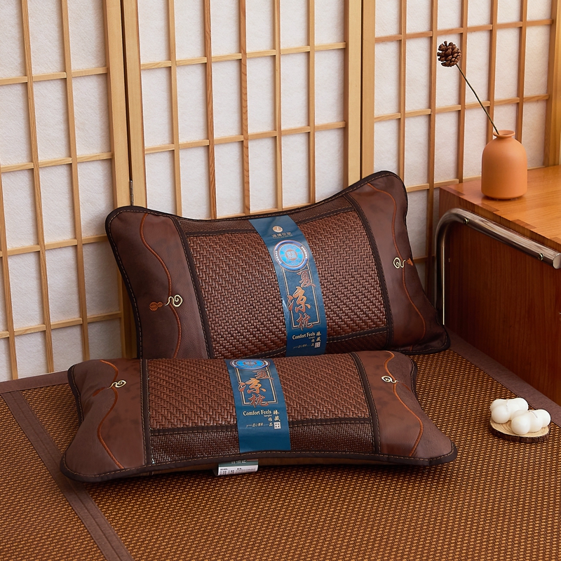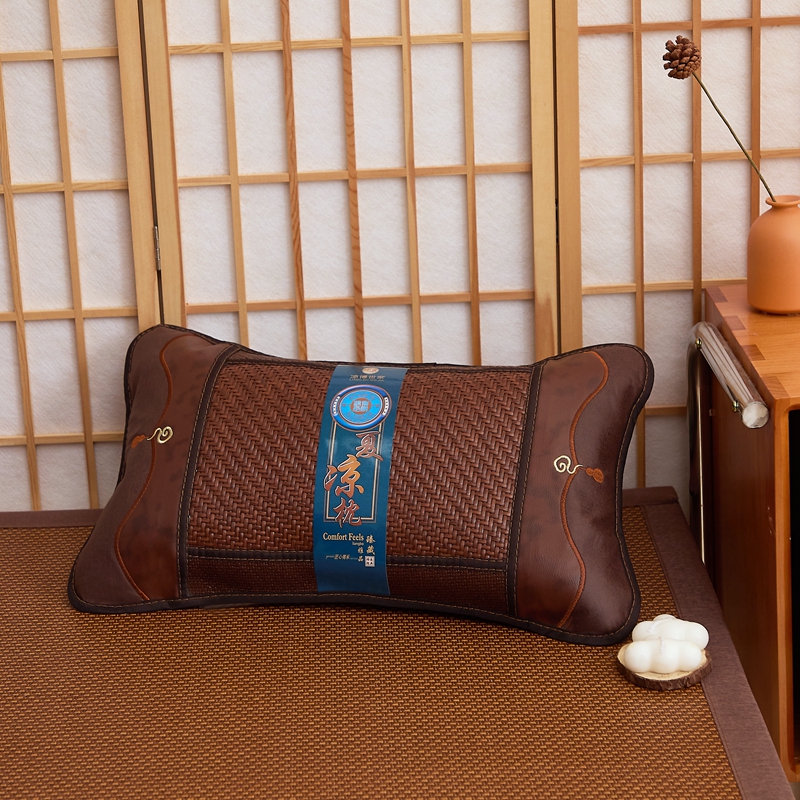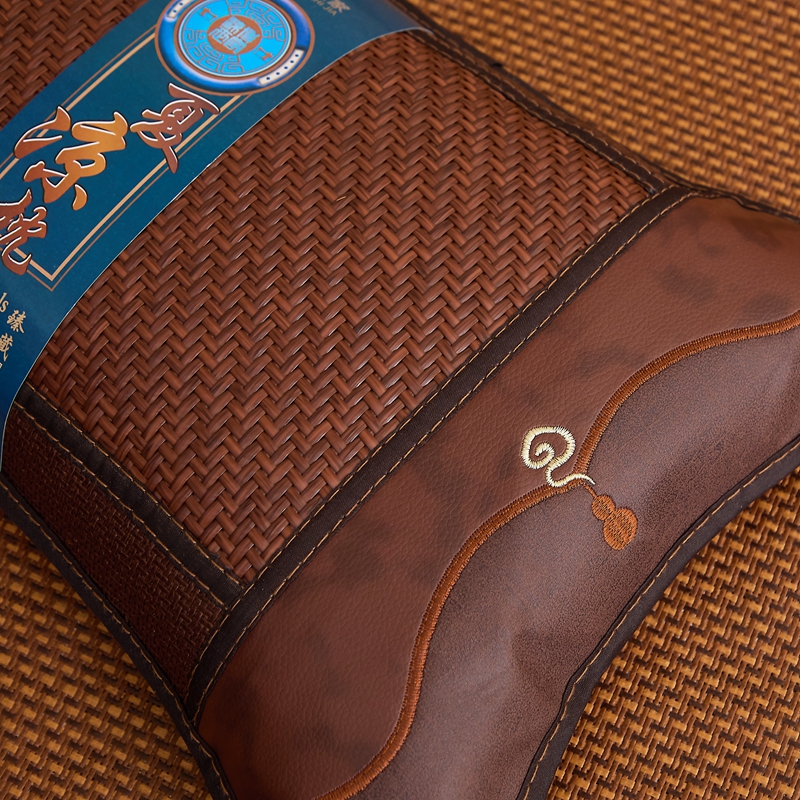 (总)优波兔 2025新款夏凉枕冰藤中式一体式绣花圆枕(37x57)荞麦壳枕,中式冰藤圆枕37x57,中式冰藤圆枕 单枕套