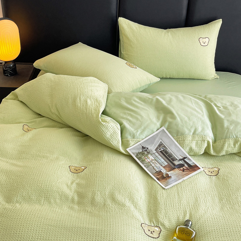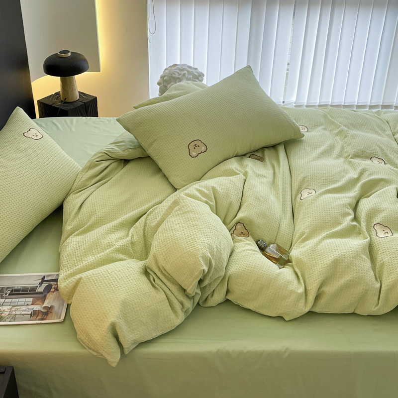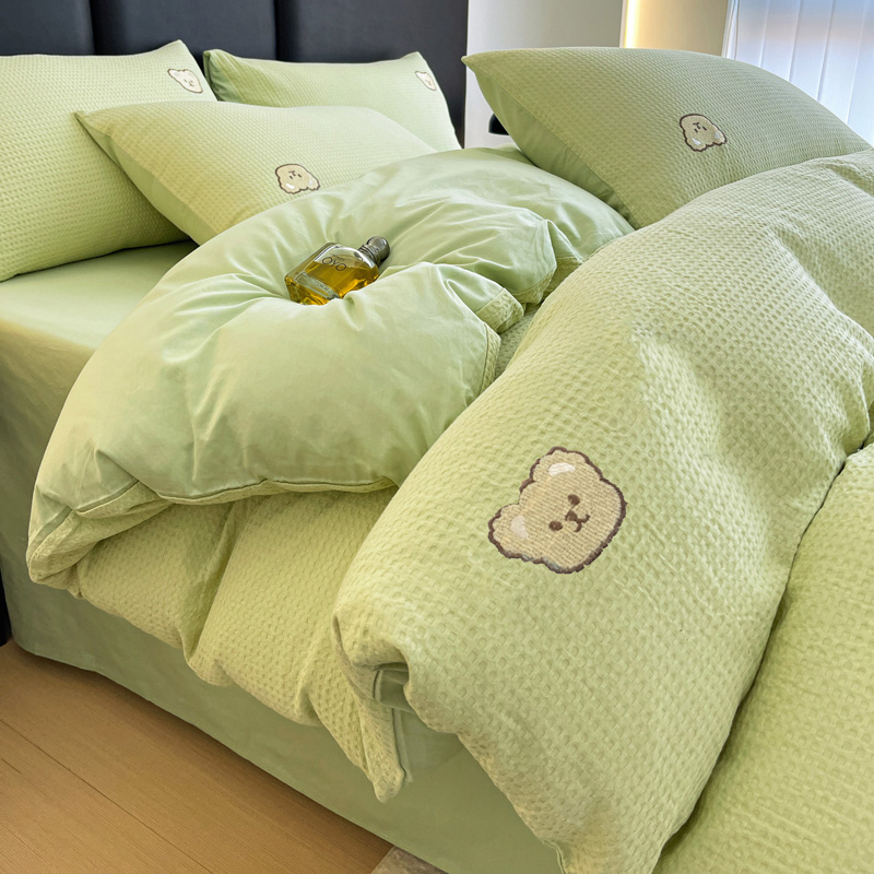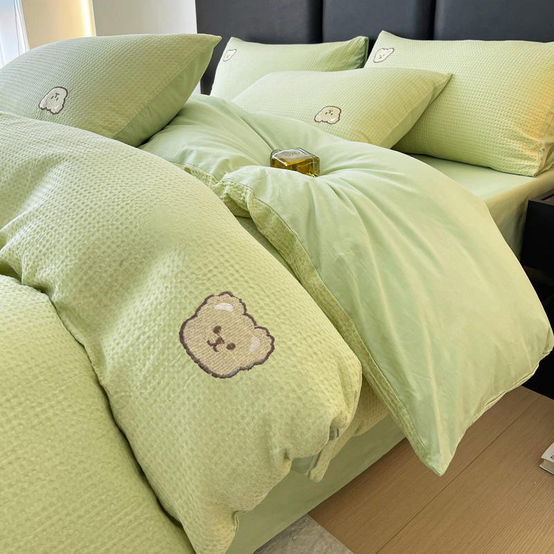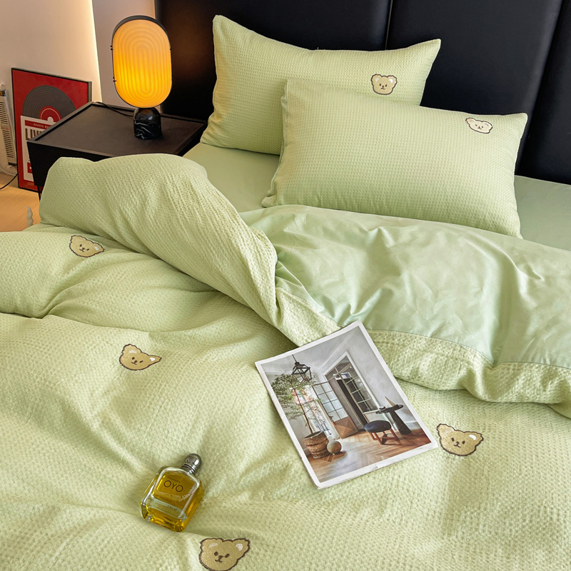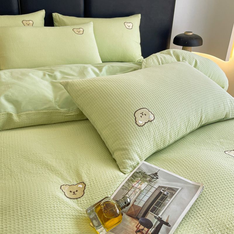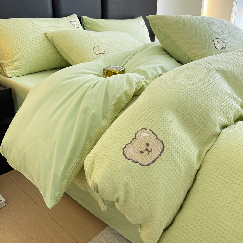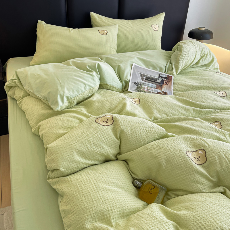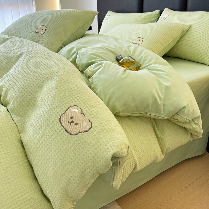 当前位置: 91家纺网 > 商品网购 > 床品套件 > 四件套 > 全棉普通四件套 > 静家居 2025新款全棉纯棉华夫格北欧小熊刺绣四件套系列-风格二 北欧小熊-绿