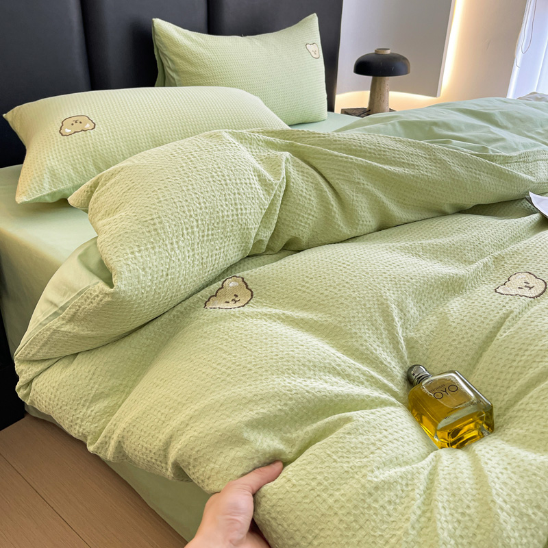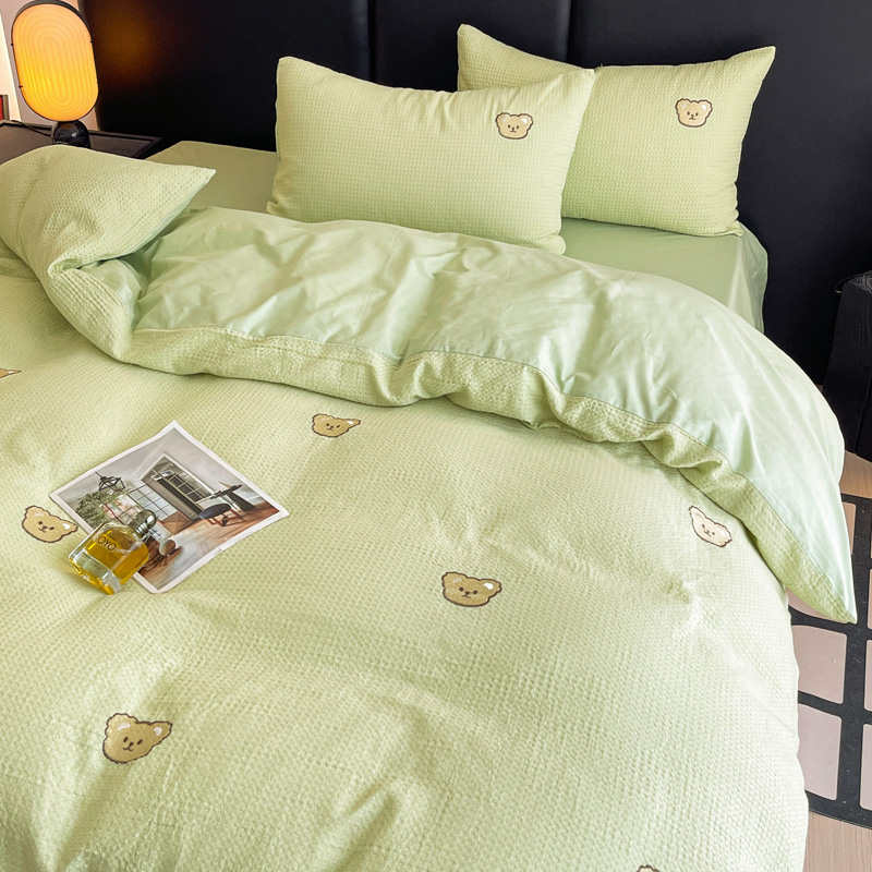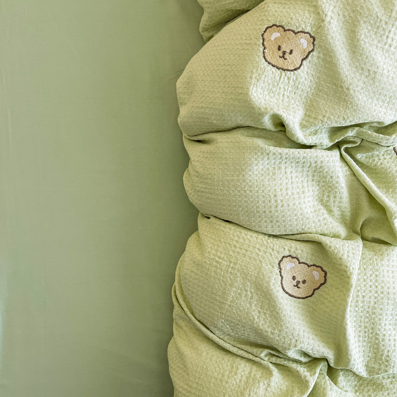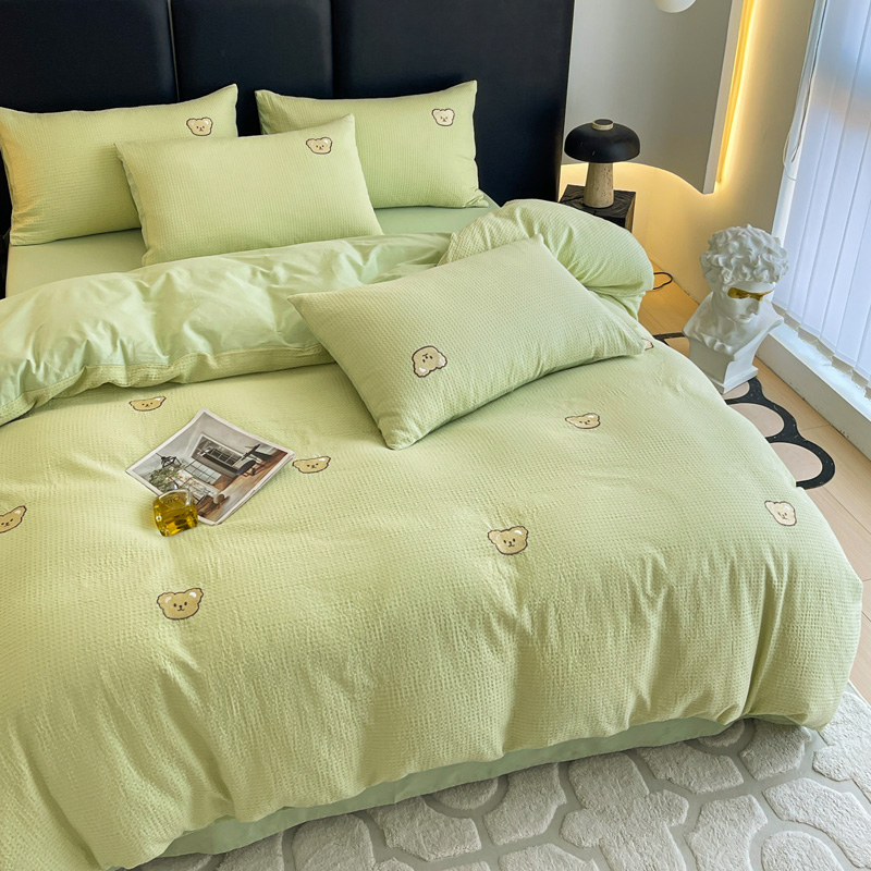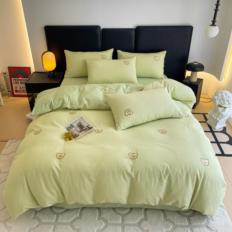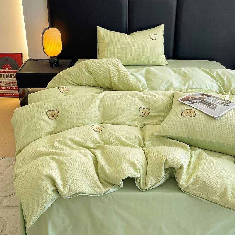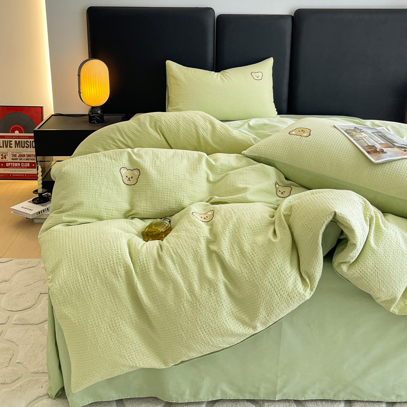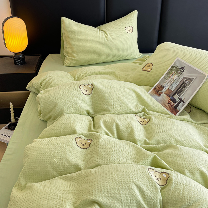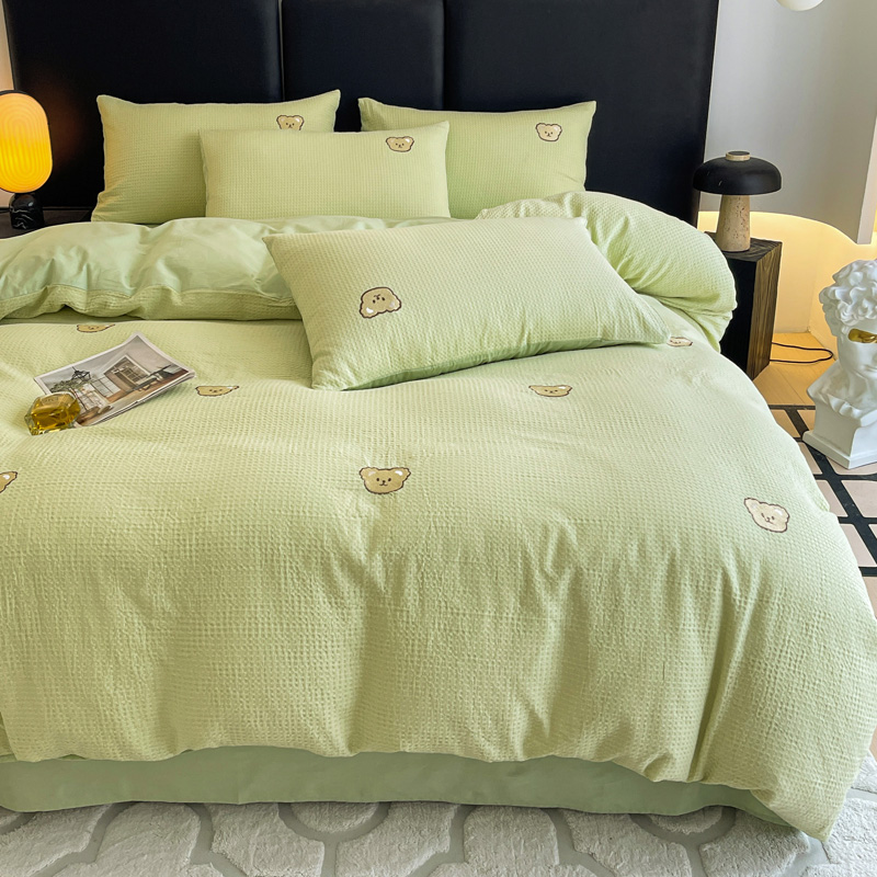 当前位置: 91家纺网 > 商品网购 > 床品套件 > 四件套 > 全棉普通四件套 > 静家居 2025新款全棉纯棉华夫格北欧小熊刺绣四件套系列-风格二 北欧小熊-绿