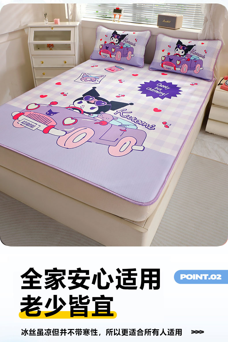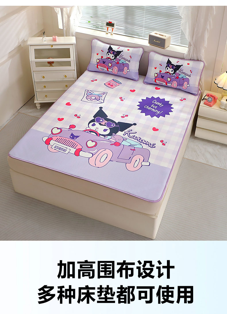 八零年代 2025大版卡通三丽鸥正版授权大版卡通夏季凉豆豆凉席三件套空调房床笠款凉席三件套 库洛米魔法