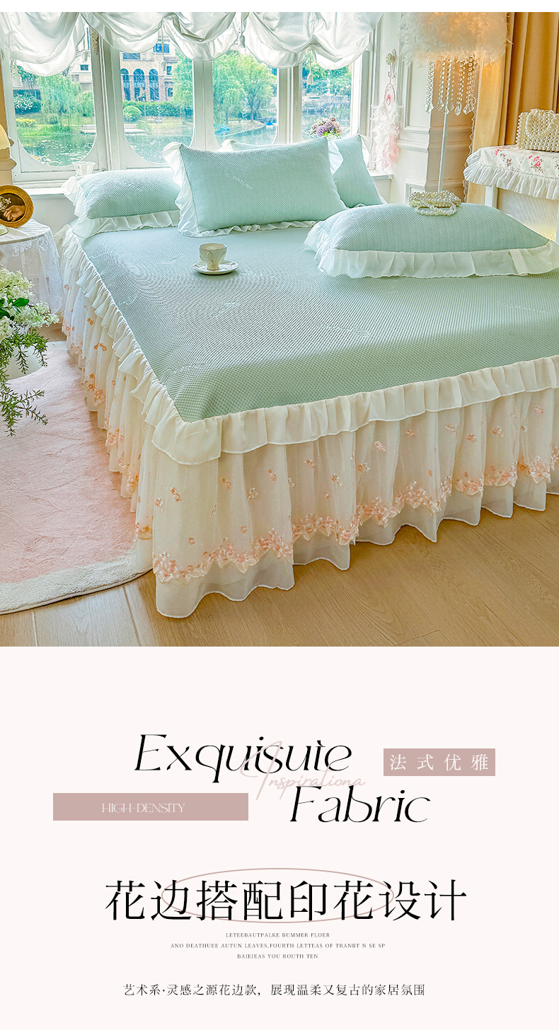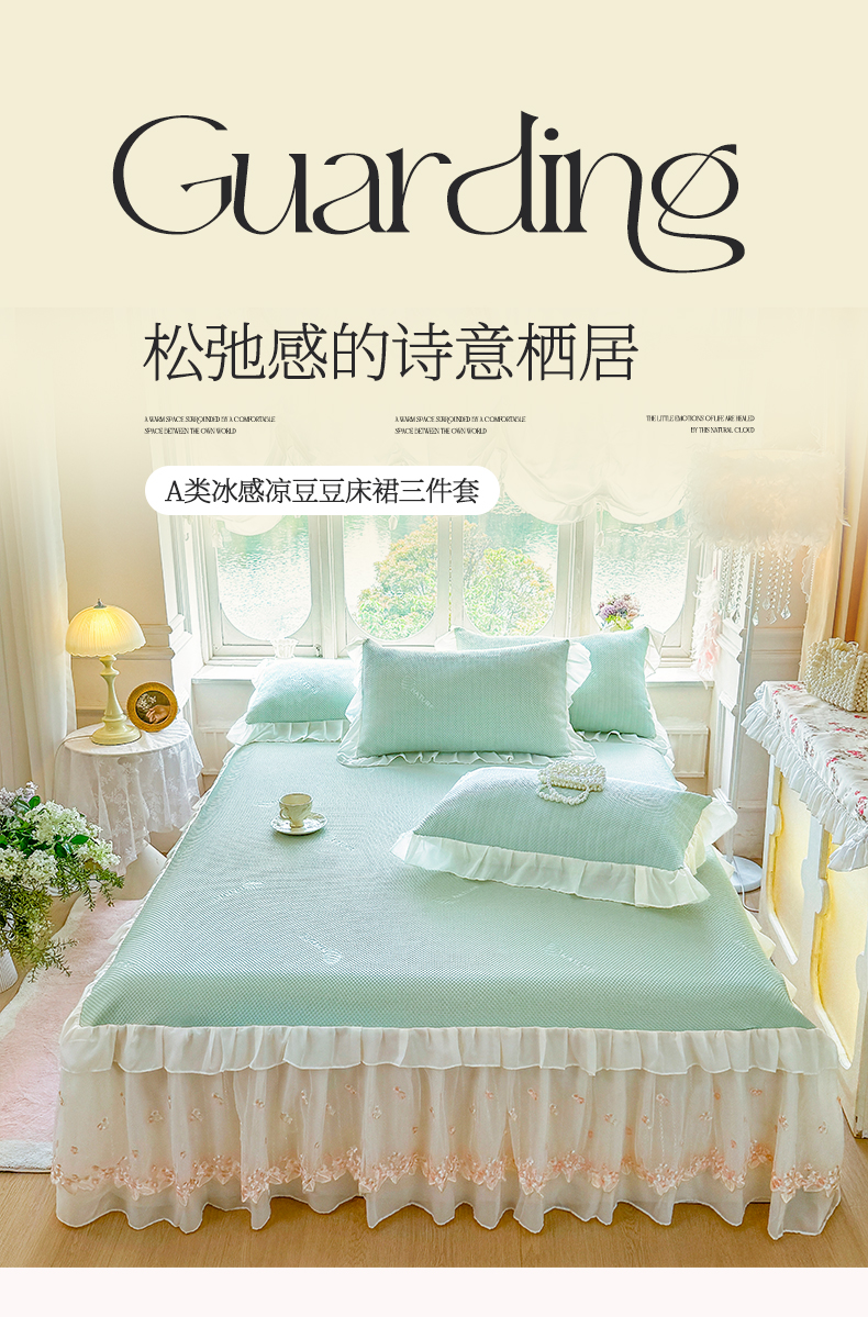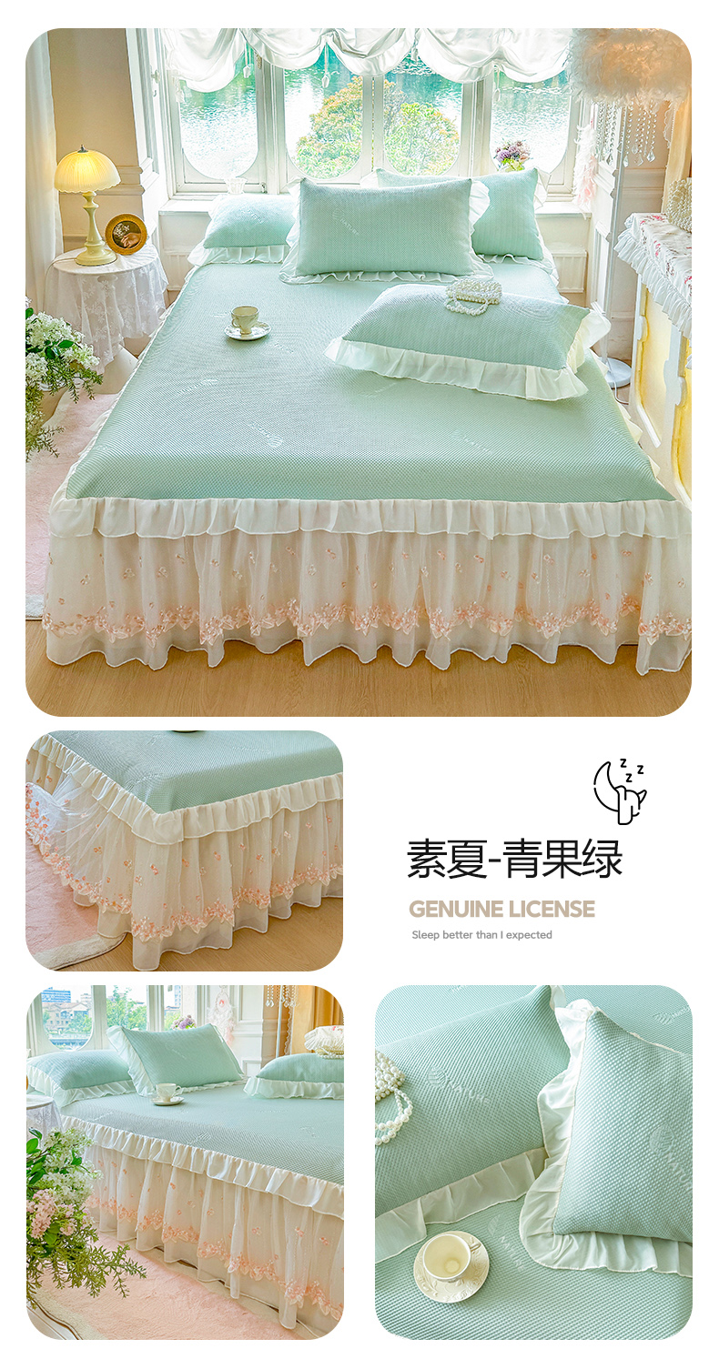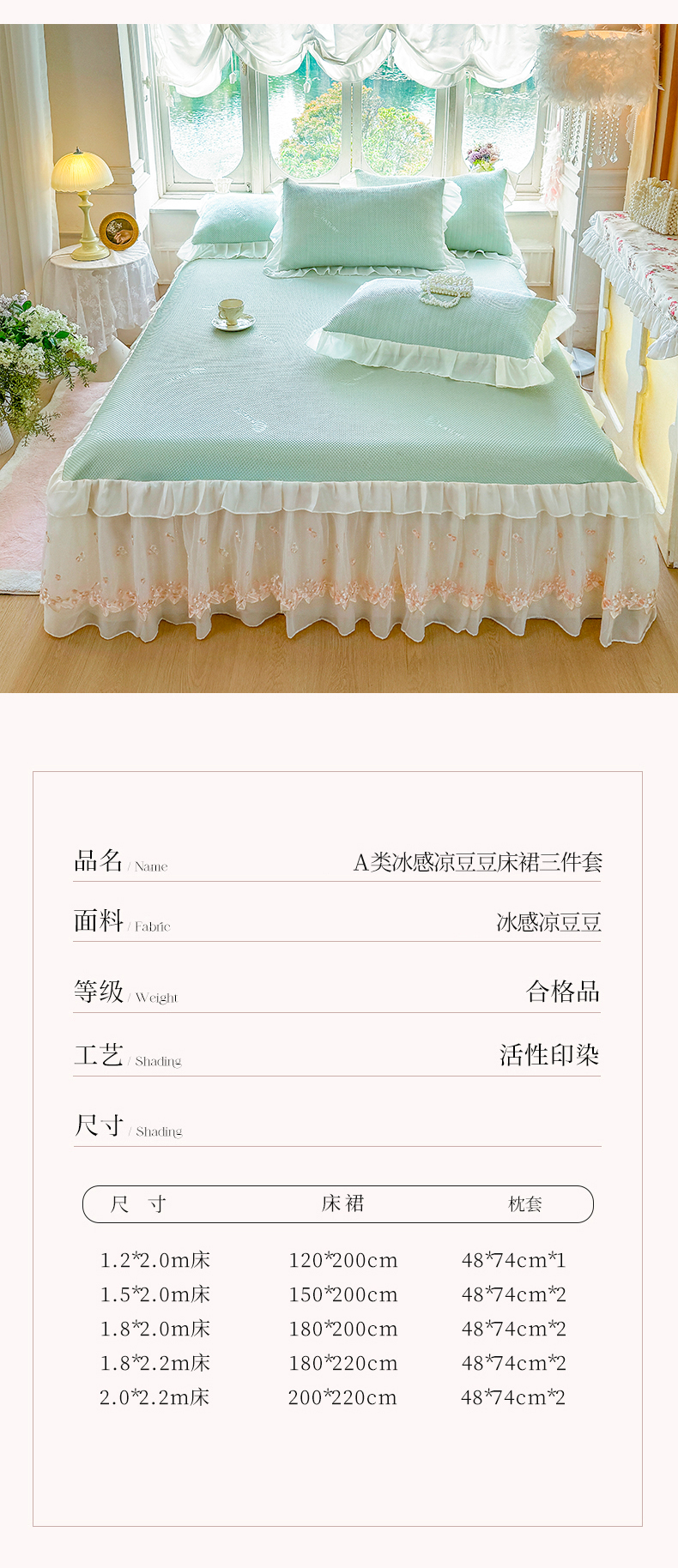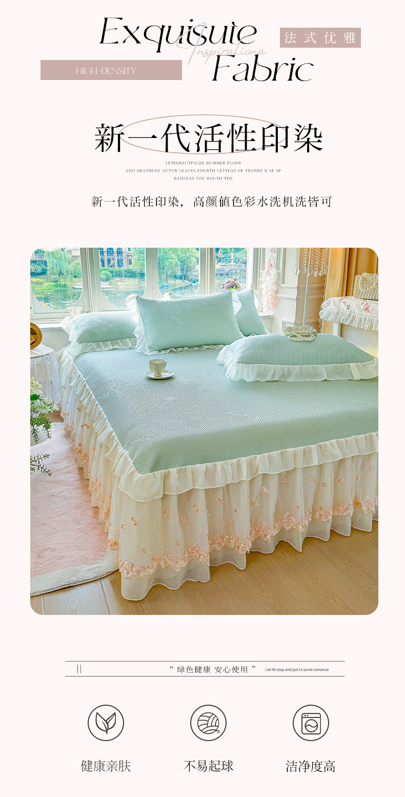 (总)虹星家纺 2025新款A类冰感凉豆豆床裙席三件套-素夏,素夏-抹茶绿,素夏-蜜桃粉,素夏-青果绿,素夏-天空蓝,素夏-月光灰