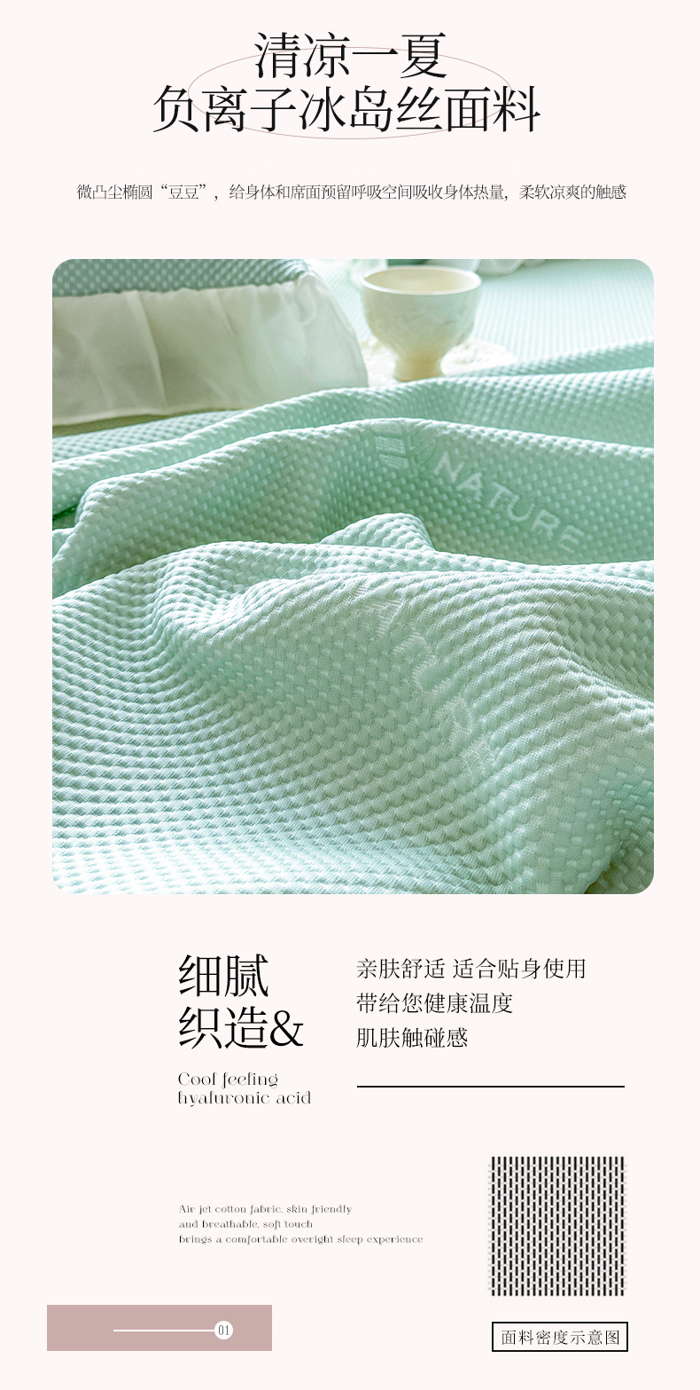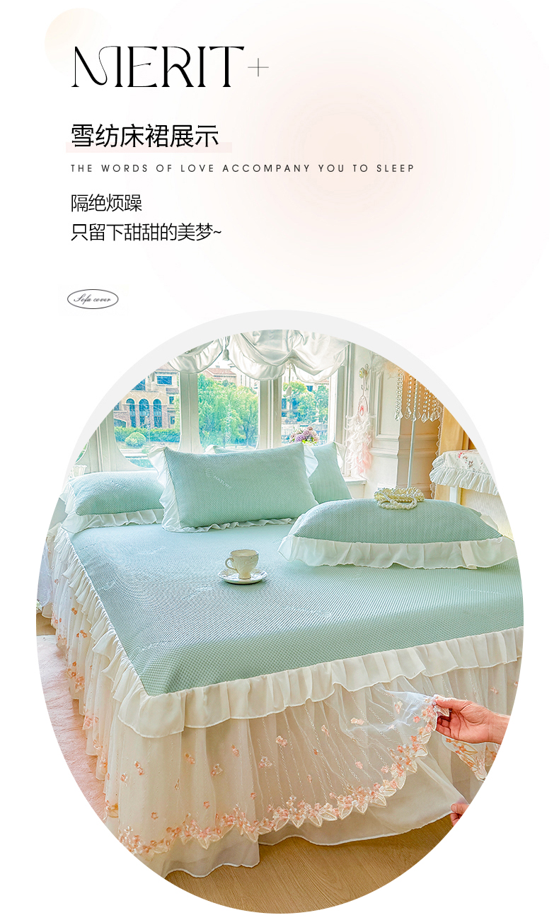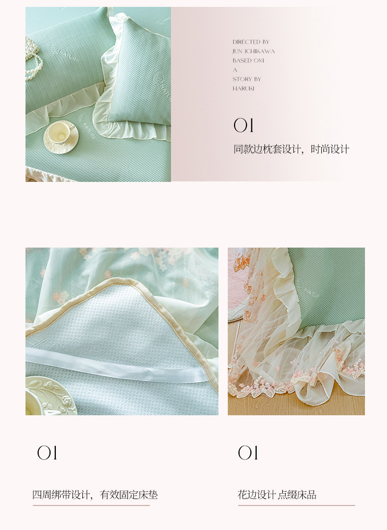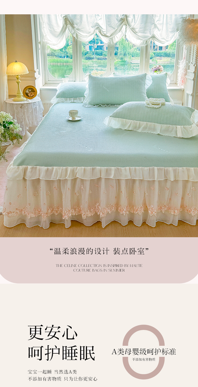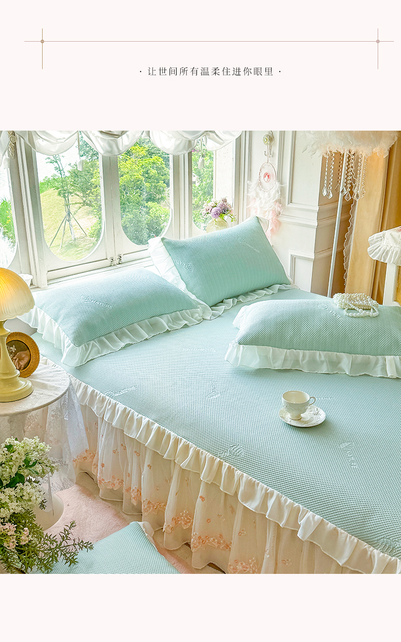 (总)虹星家纺 2025新款A类冰感凉豆豆床裙席三件套-素夏,素夏-抹茶绿,素夏-蜜桃粉,素夏-青果绿,素夏-天空蓝,素夏-月光灰