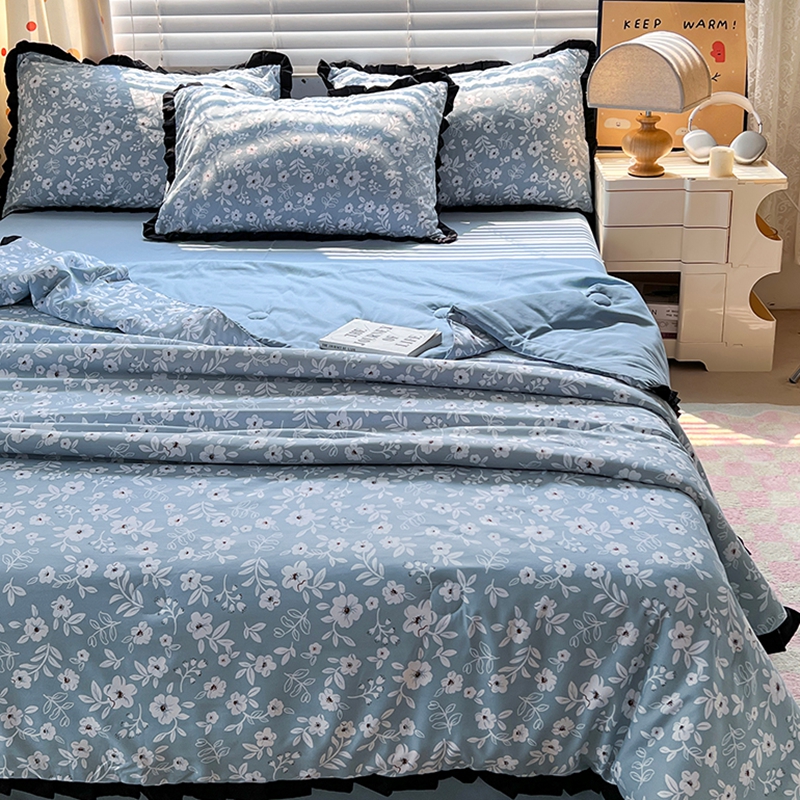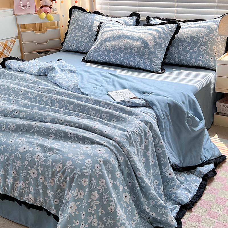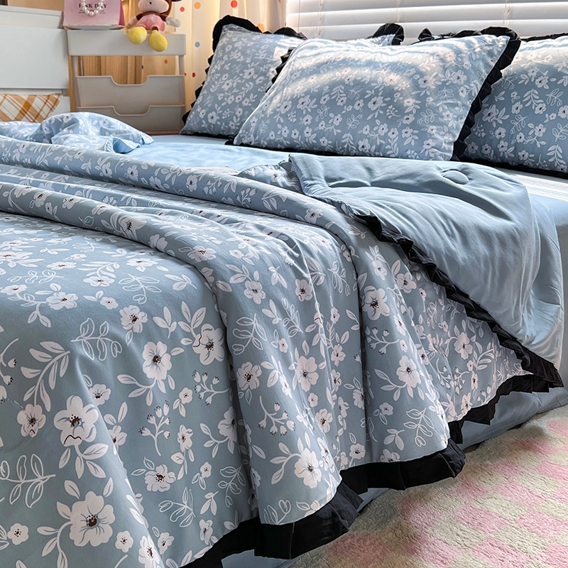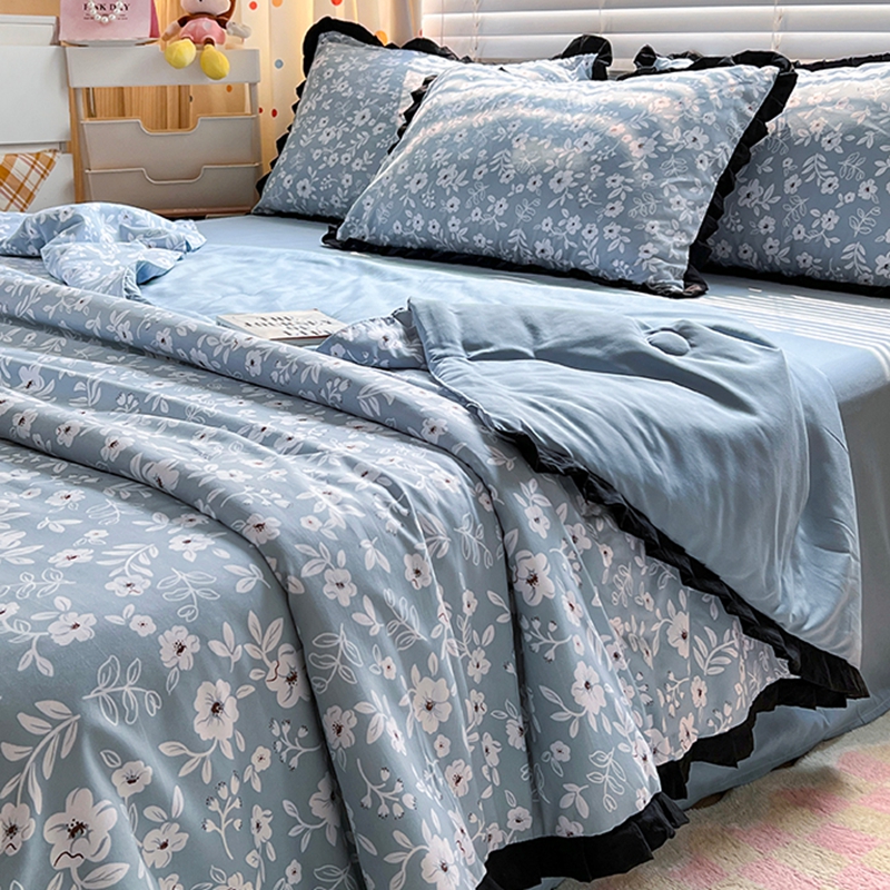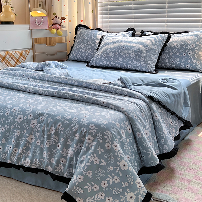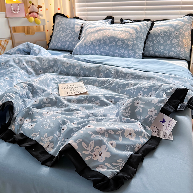 当前位置: 91家纺网 > 商品网购 > 床品套件 > 四件套 > 夏被四件套 > 曼璐家纺 2025新款赫本风黑色花边单夏被韩版荷叶边夏被四件套夏凉被空调被直播爆款 木槿