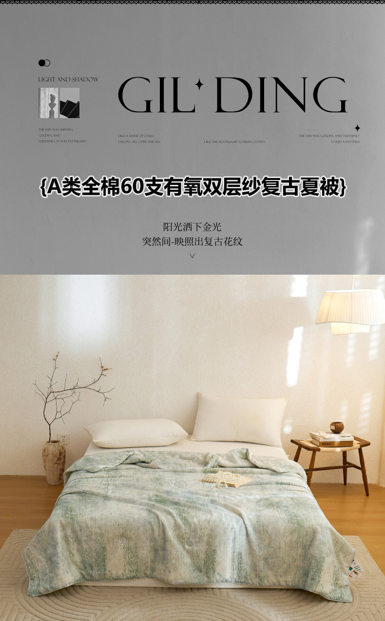 商品名称:蜜柚 2025新款赛瑞娜复古系列 A类全棉纯棉60支有氧双层纱复古夏被夏凉被空调被 约定绿