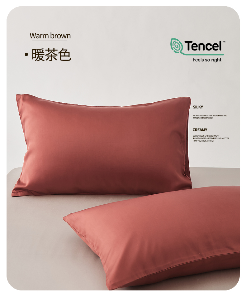 商品名称:禧缘家纺(原梦想家) 2025新款60天丝简约舒适纯色单品系列-单枕套 暖茶色