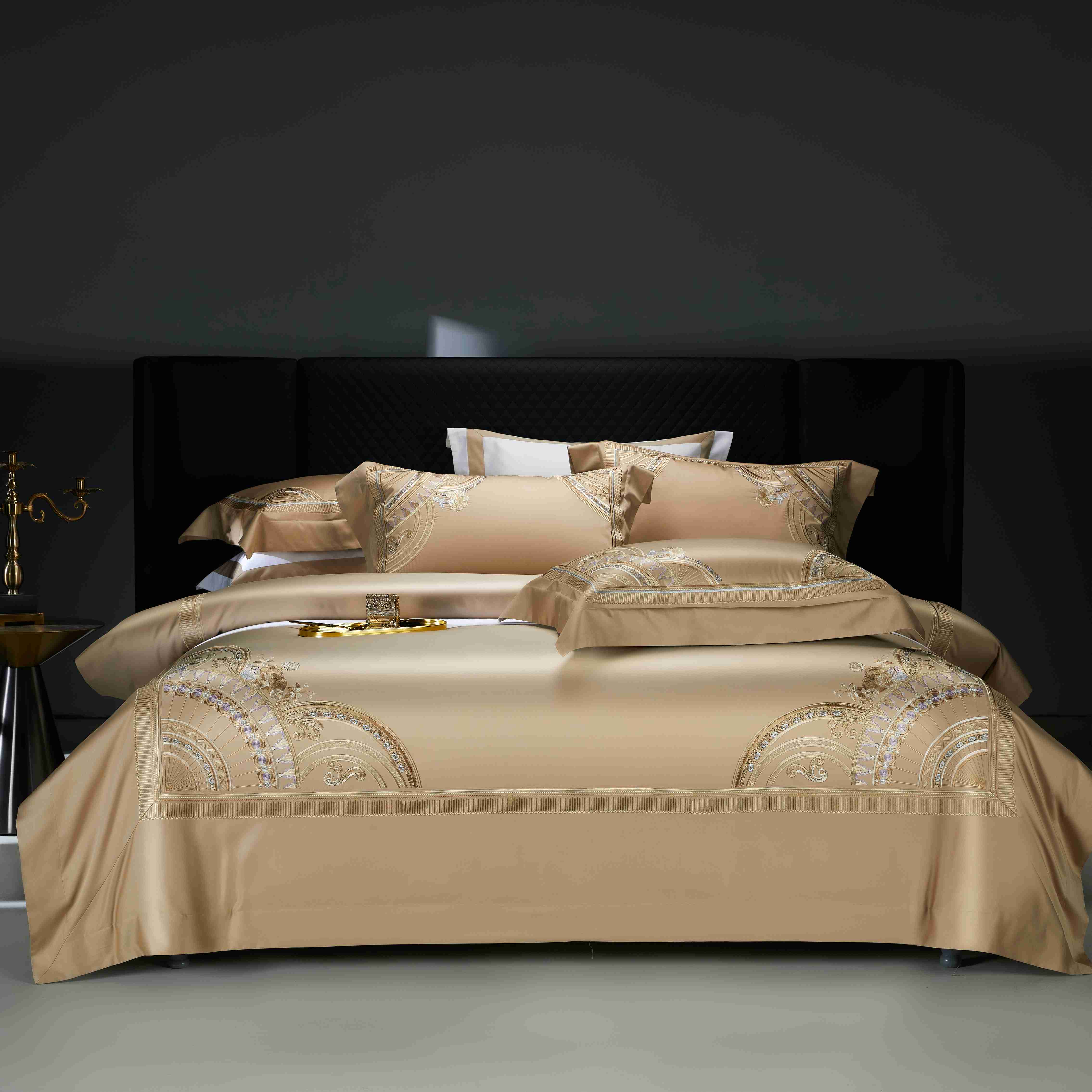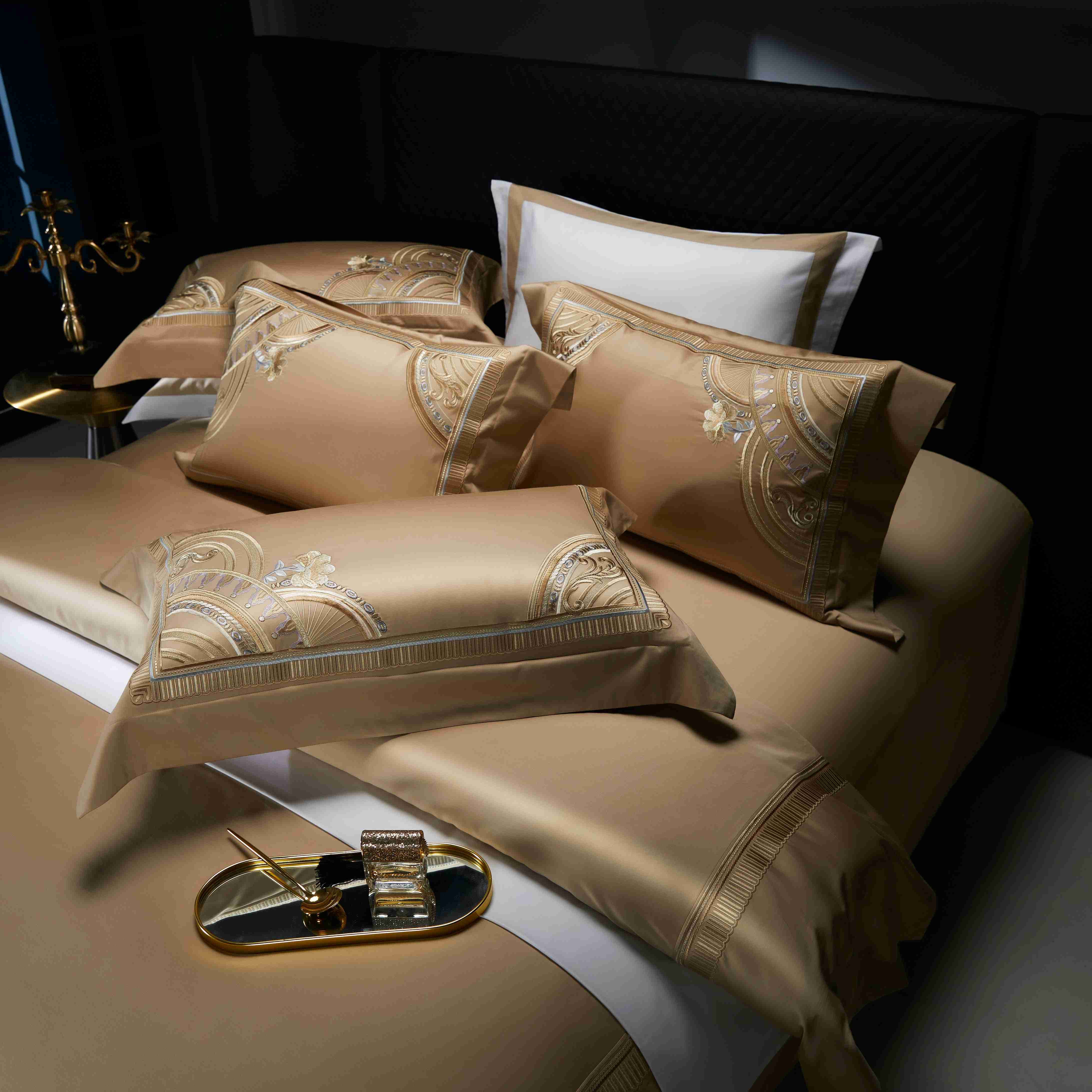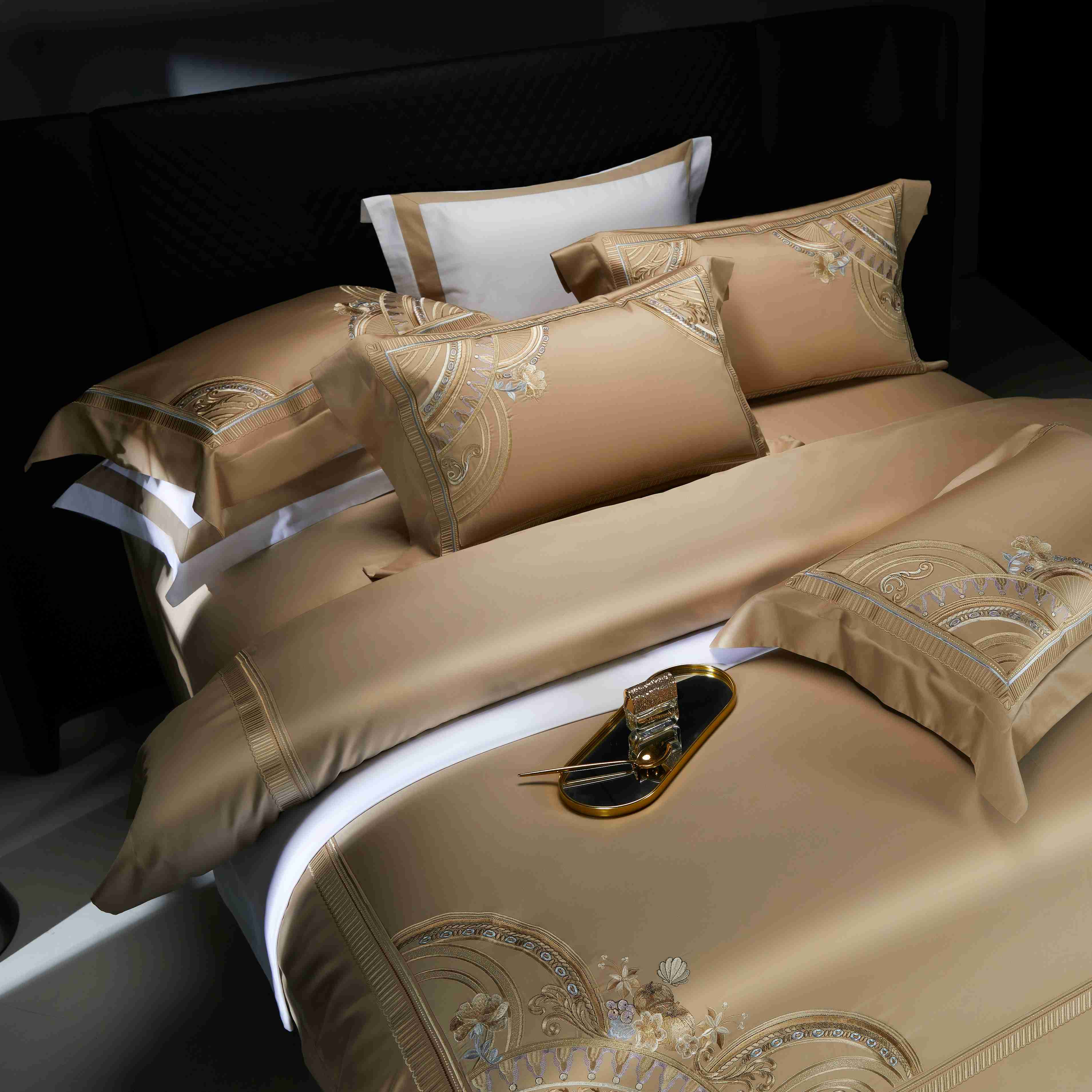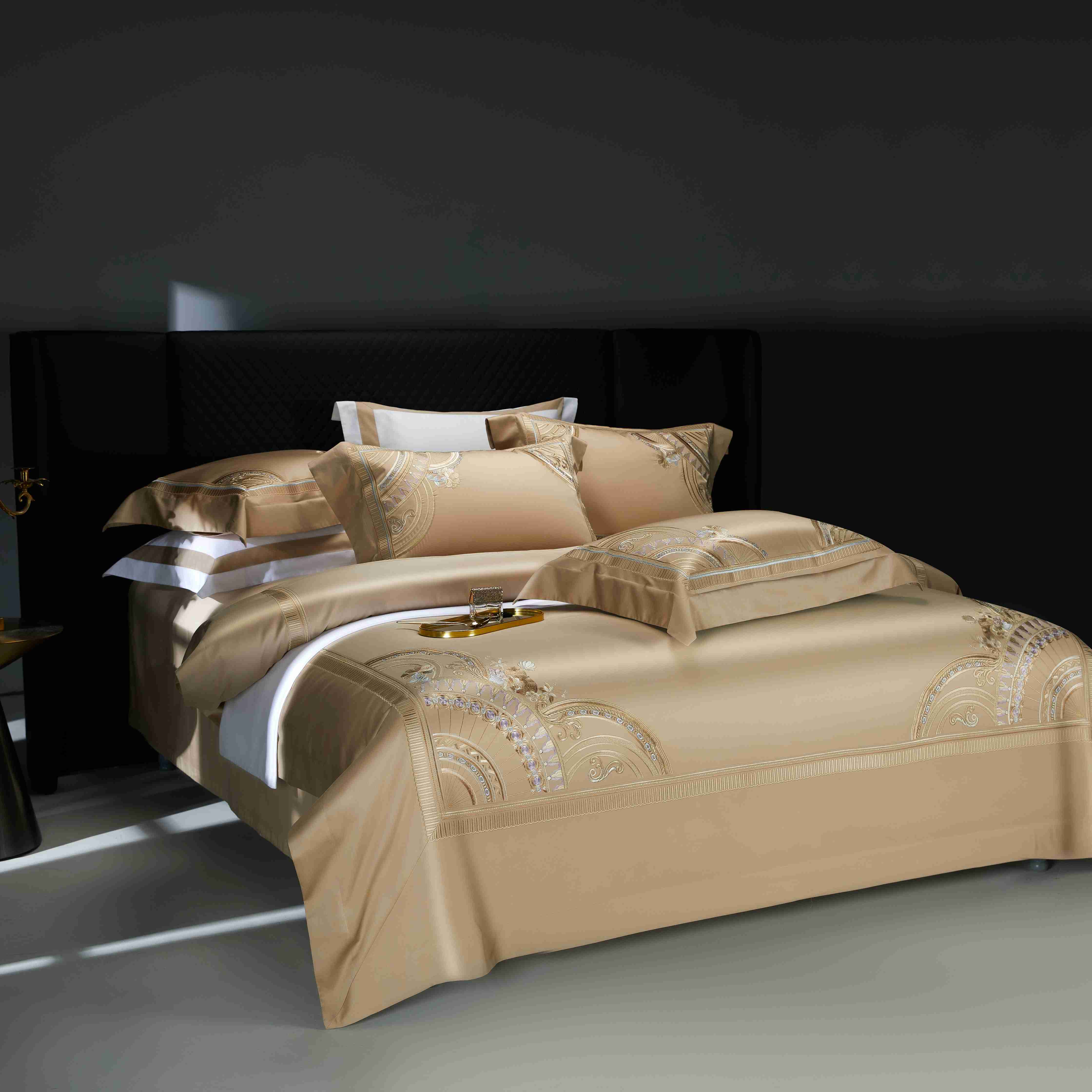 2025新款高端定织面料S140长绒棉精梳棉重磅刺绣四件套巴赫系列 巴赫 卡其