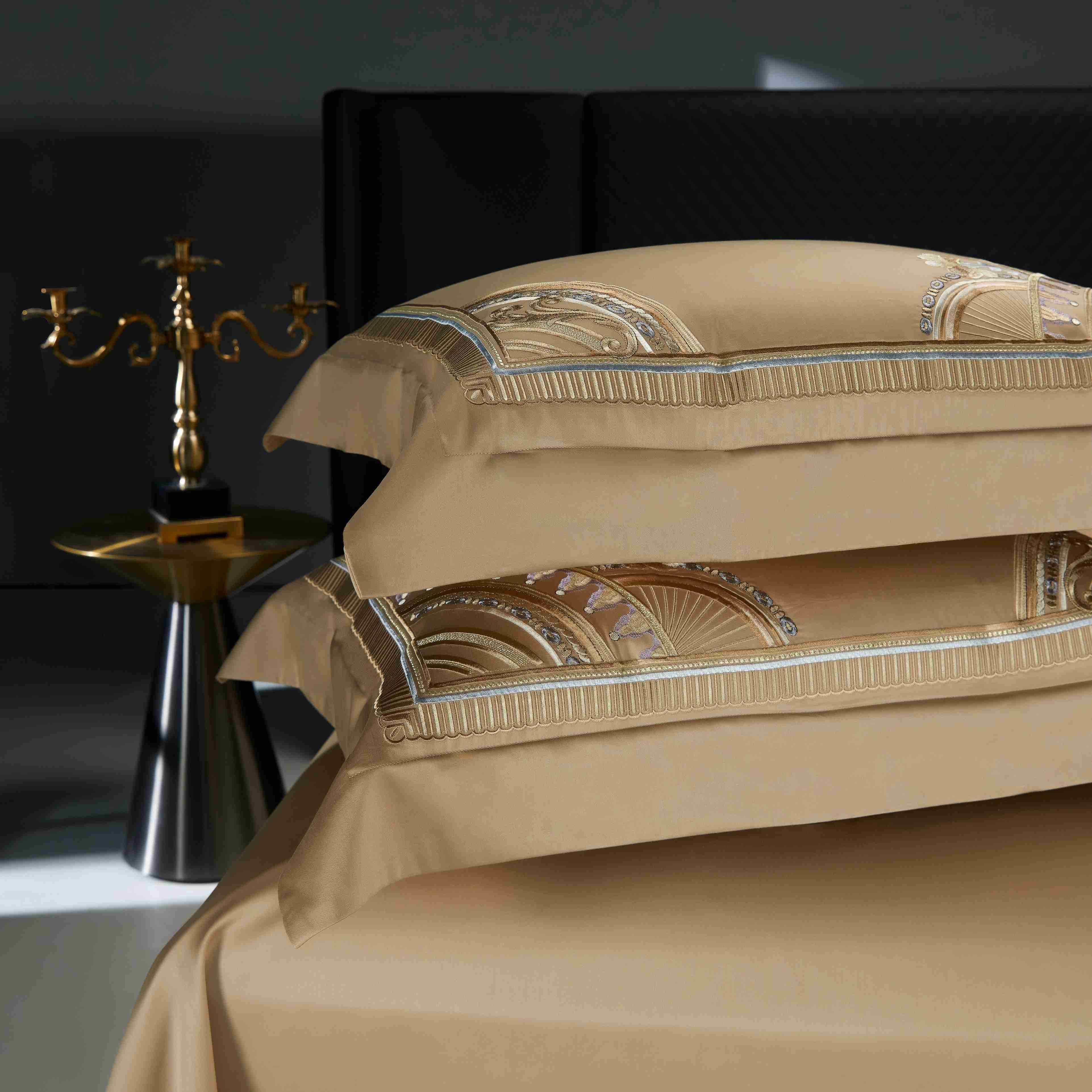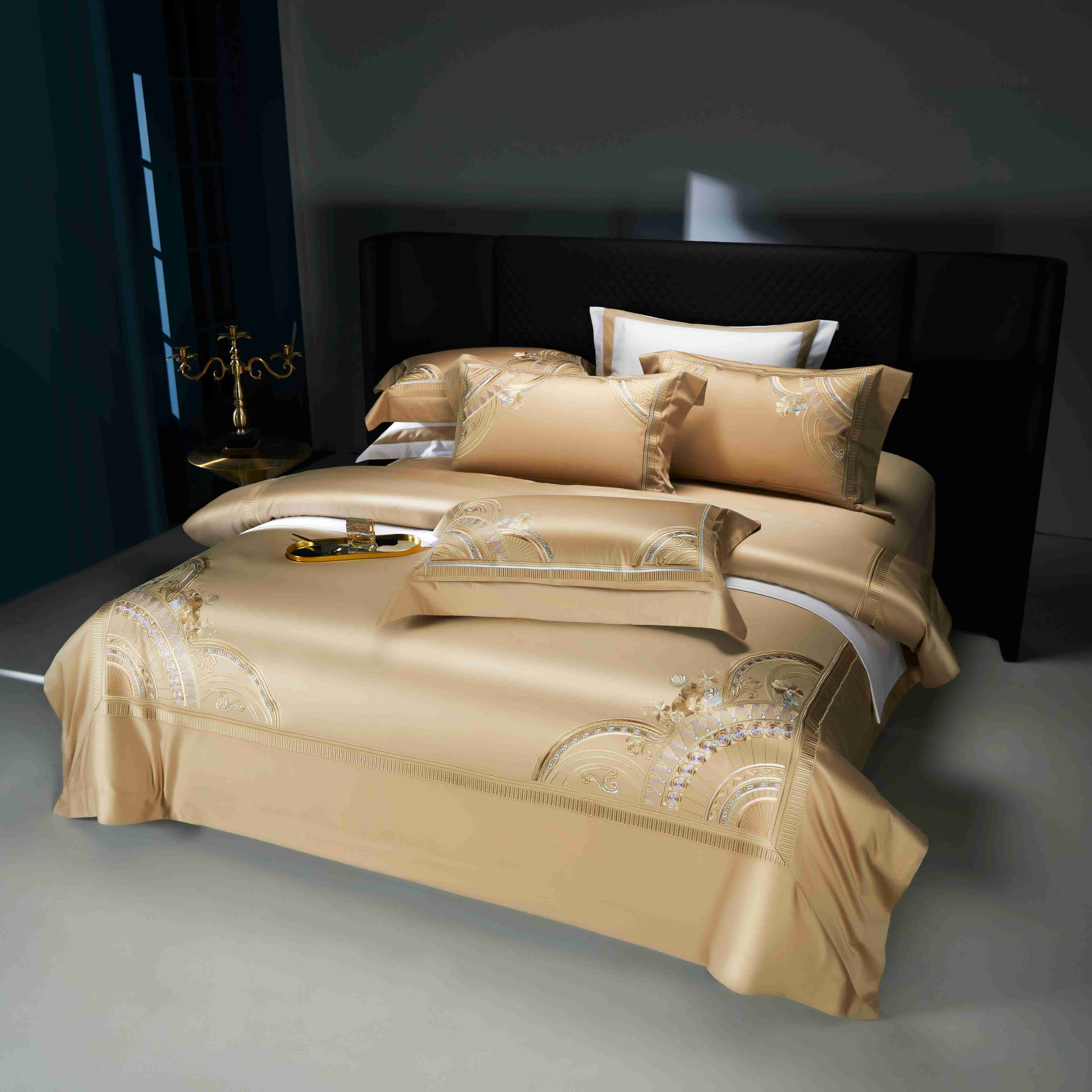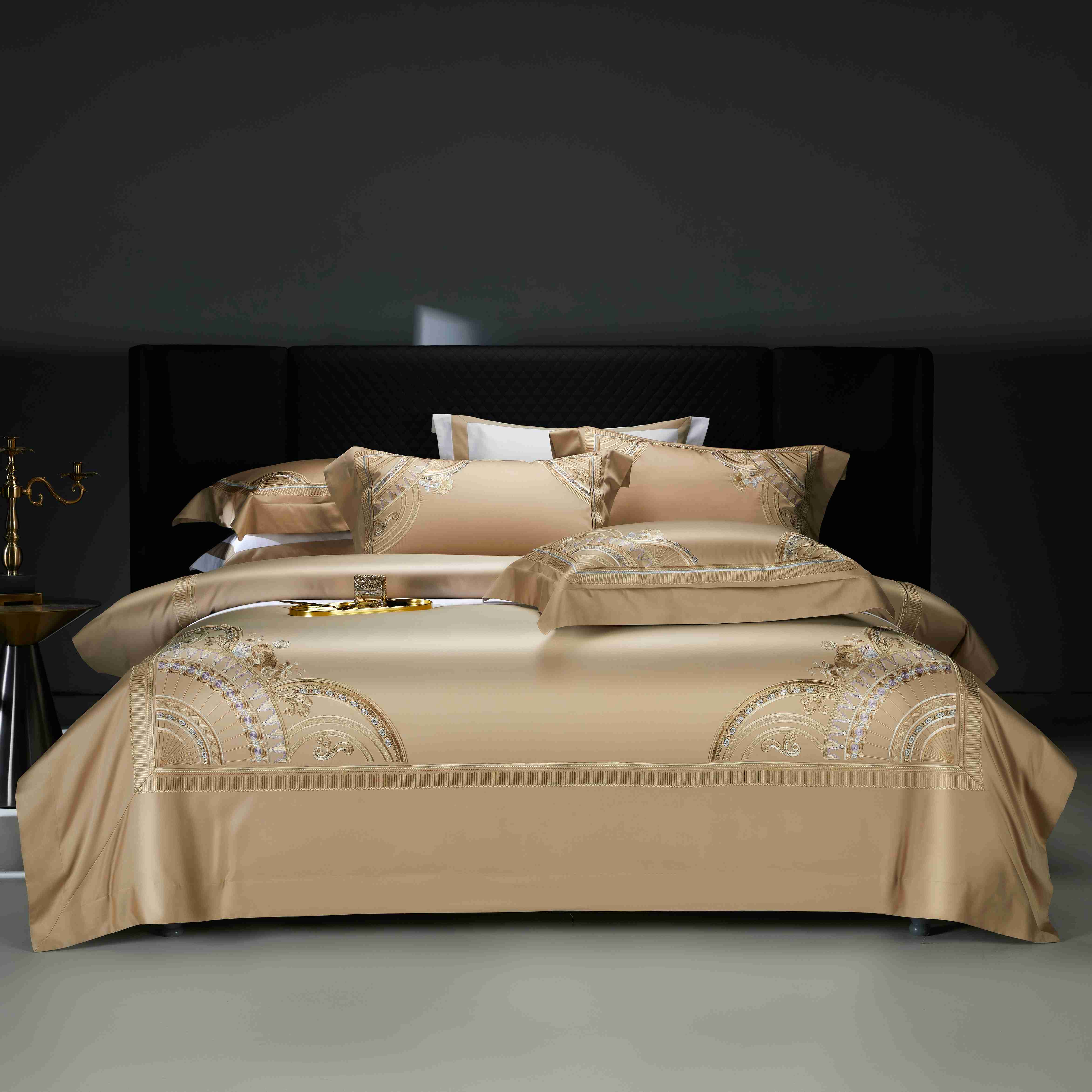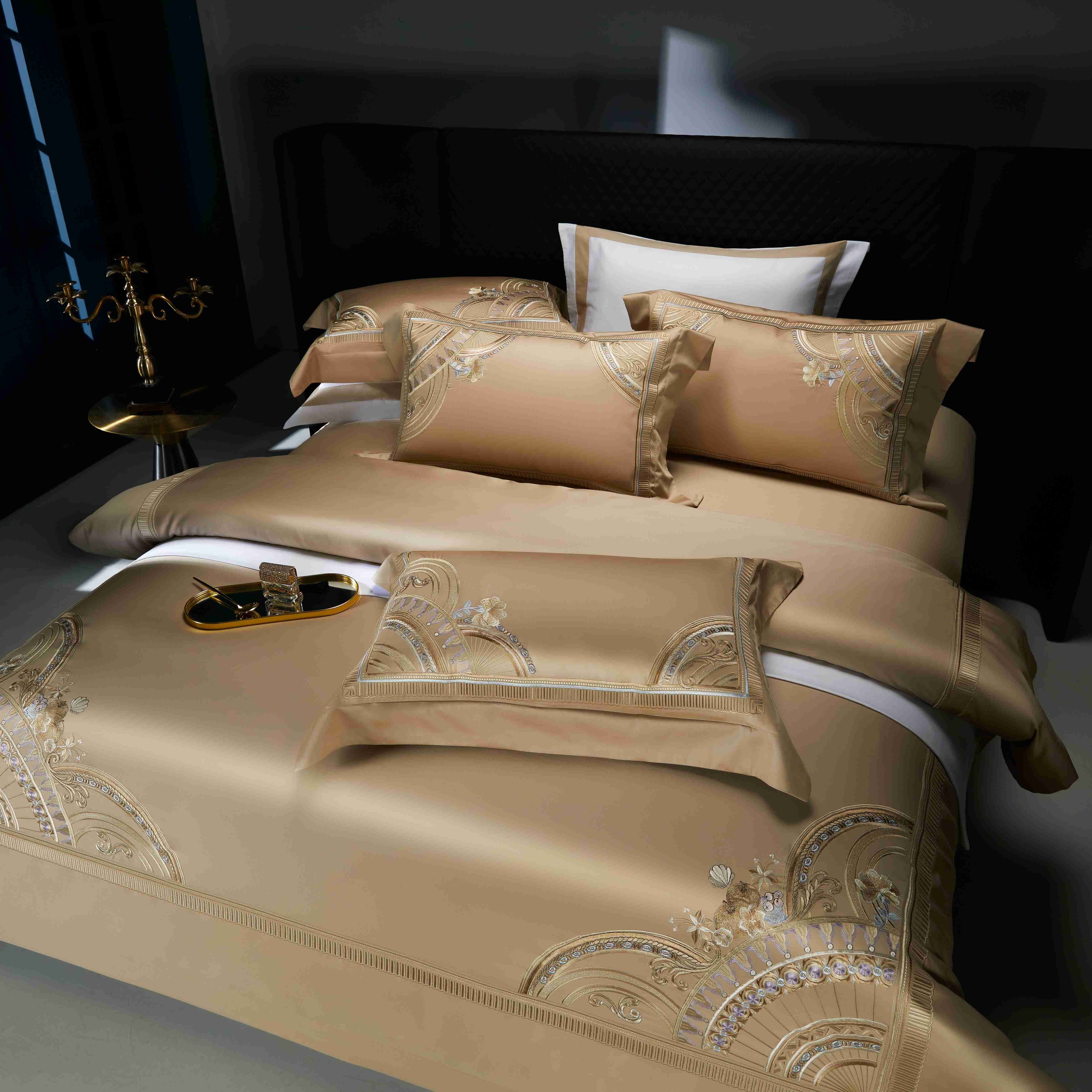 2025新款高端定织面料S140长绒棉精梳棉重磅刺绣四件套巴赫系列 巴赫 卡其