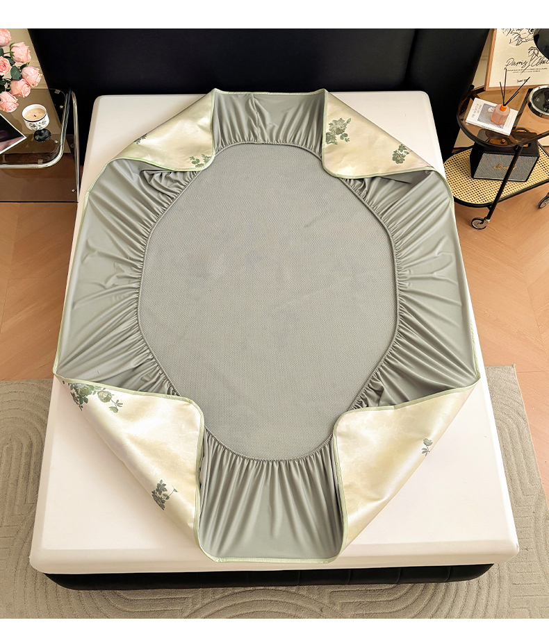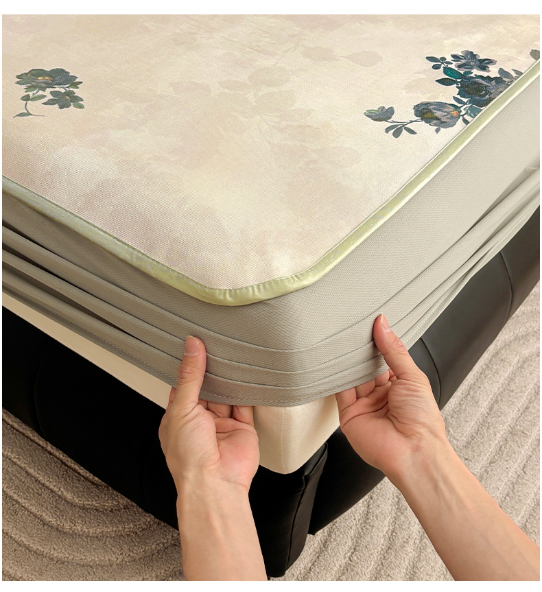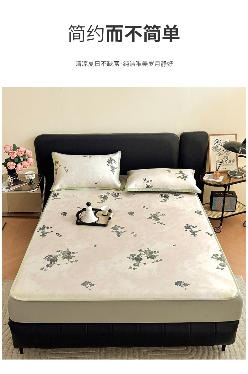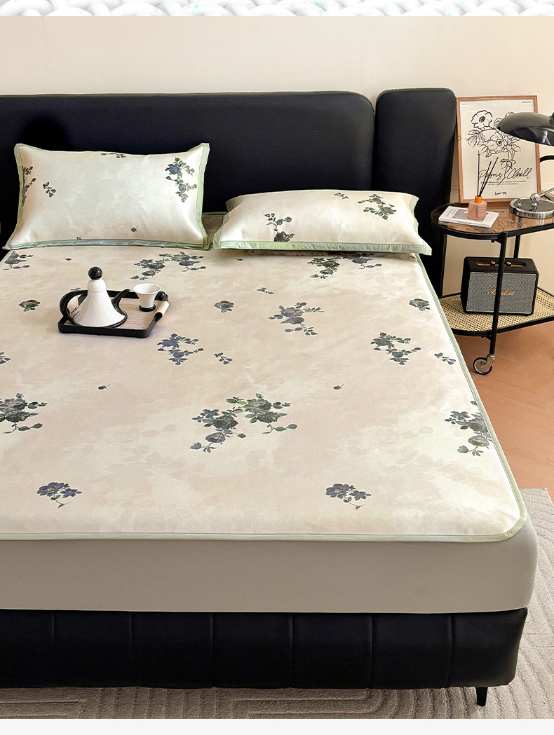 绒艺席业 2025新款赫本风印花凉席席子系列床笠款 苑叶