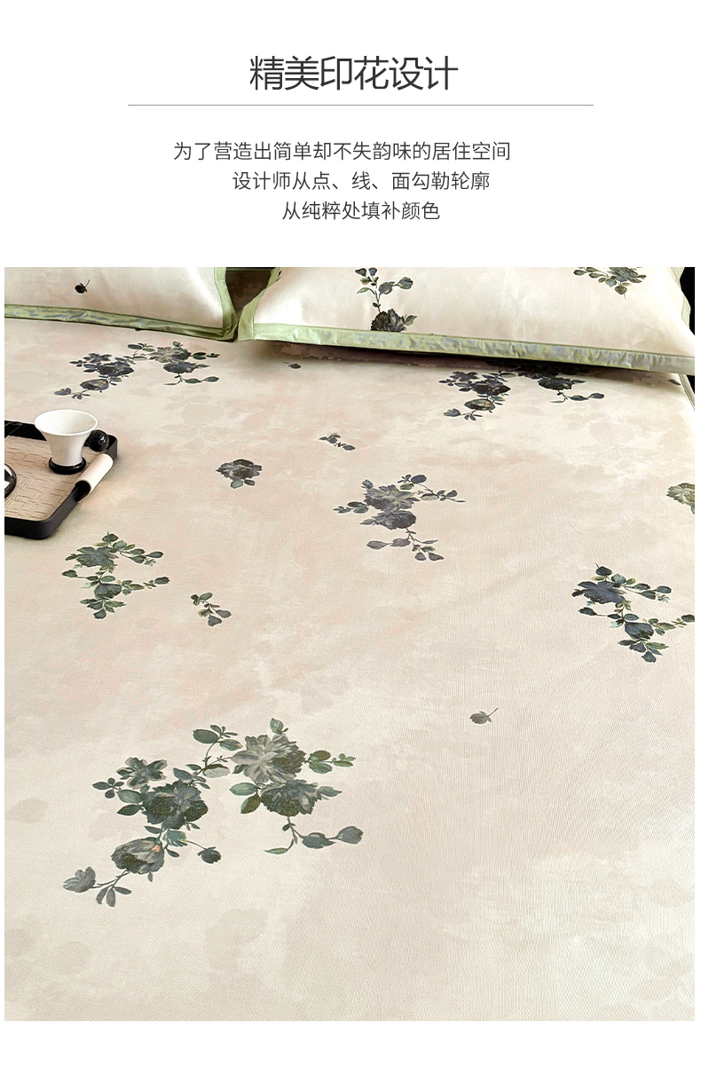 商品名称:绒艺席业 2025新款赫本风印花凉席席子系列床笠款 苑叶