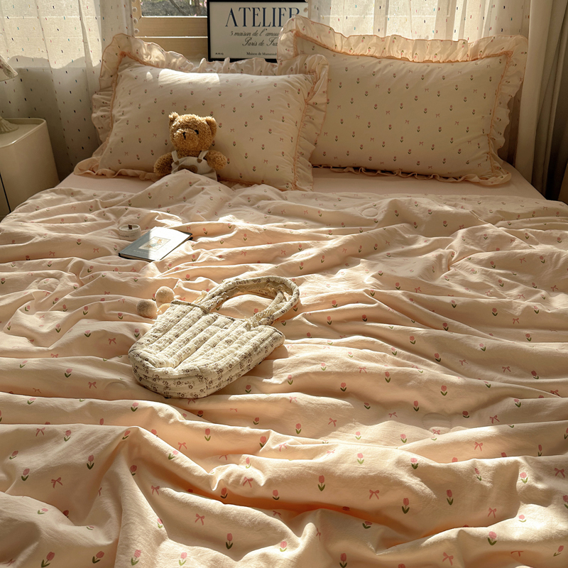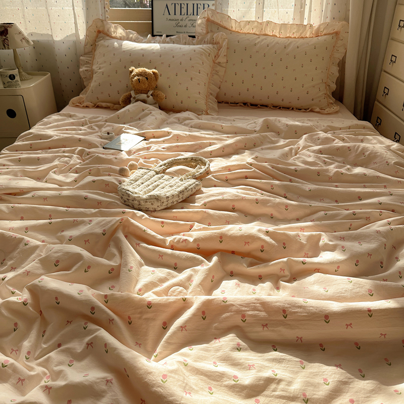当前位置: 91家纺网 > 商品网购 > 被子 > 夏被 > 轻奢坊 2025新款水洗棉密拷花边夏被夏凉被空调被四件套 小粉花