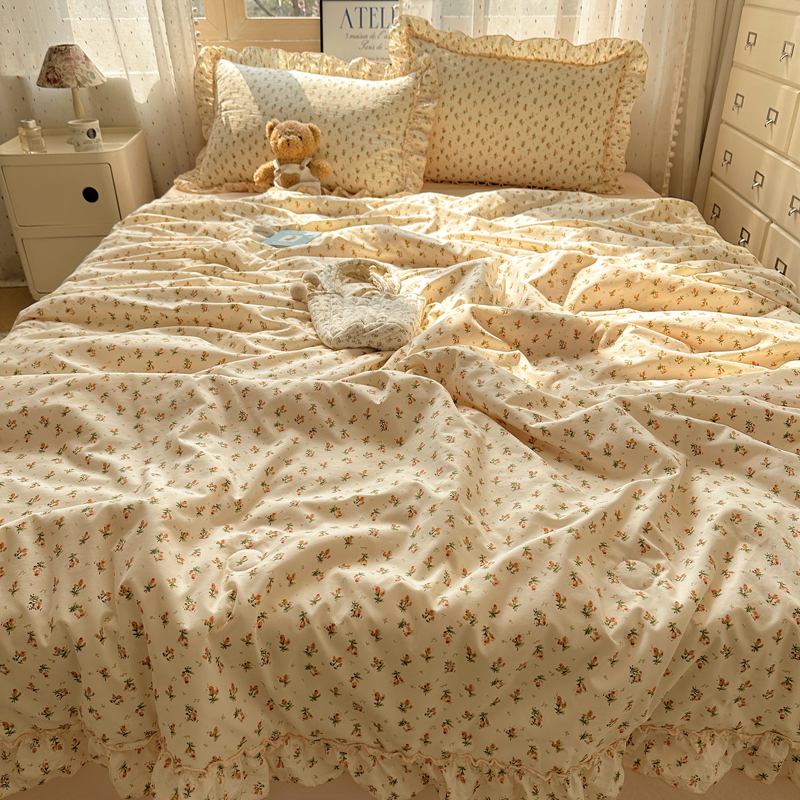 轻奢坊 2025新款水洗棉密拷花边夏被夏凉被空调被四件套 小粉花
