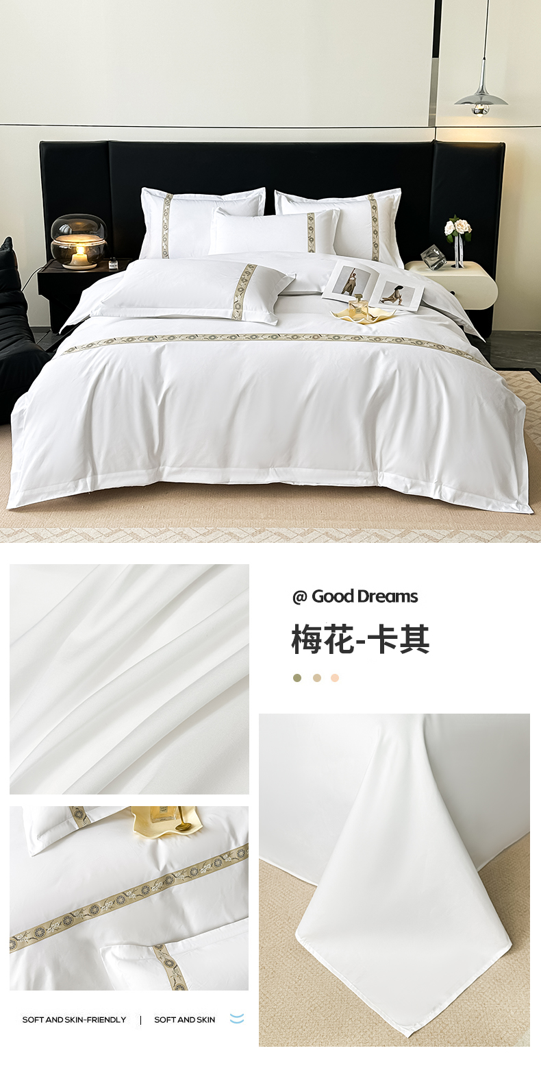 当前位置: 91家纺网 > 商品网购 > 床品套件 > 四件套 > 普通磨毛四件套 > 梦庭帛美 2025新款宾馆刺绣四件套 梅花-卡其