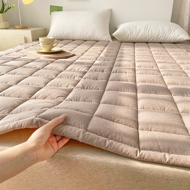 • 91家纺网 家纺一手货源 找家纺 丽诺床垫 2025新款亲肤舒适全棉纯棉色织棉花床褥床垫 卡其色