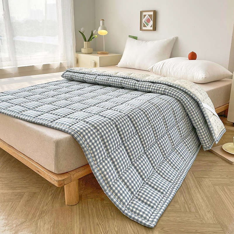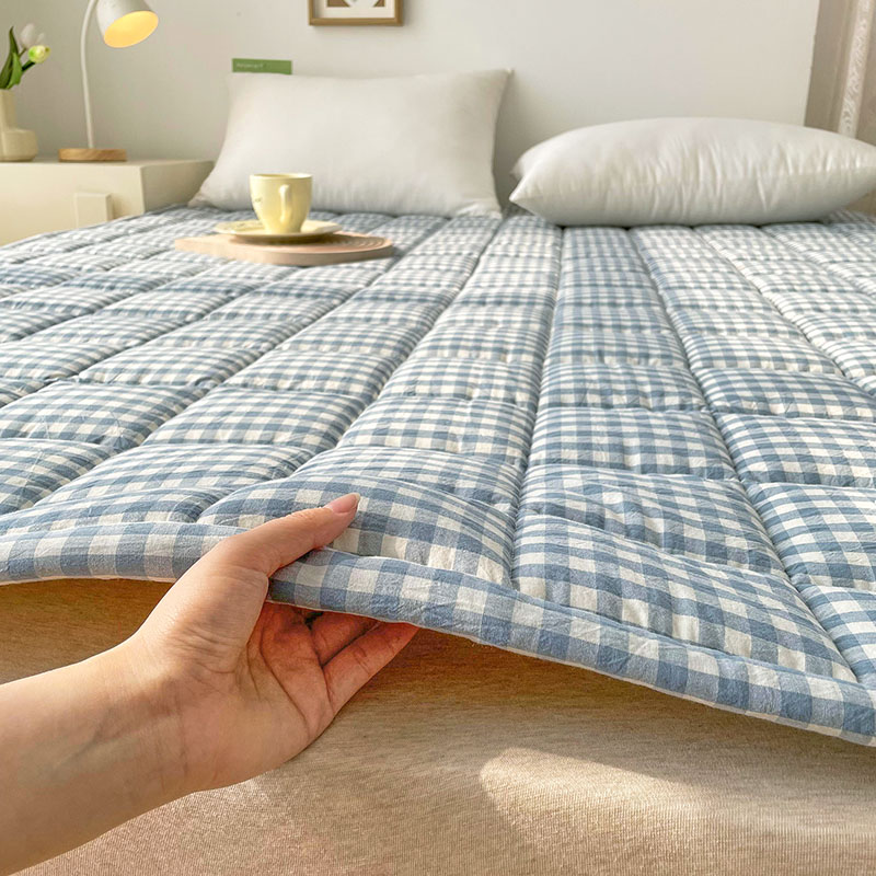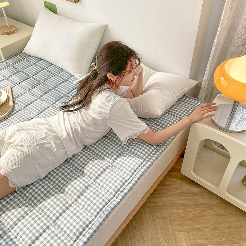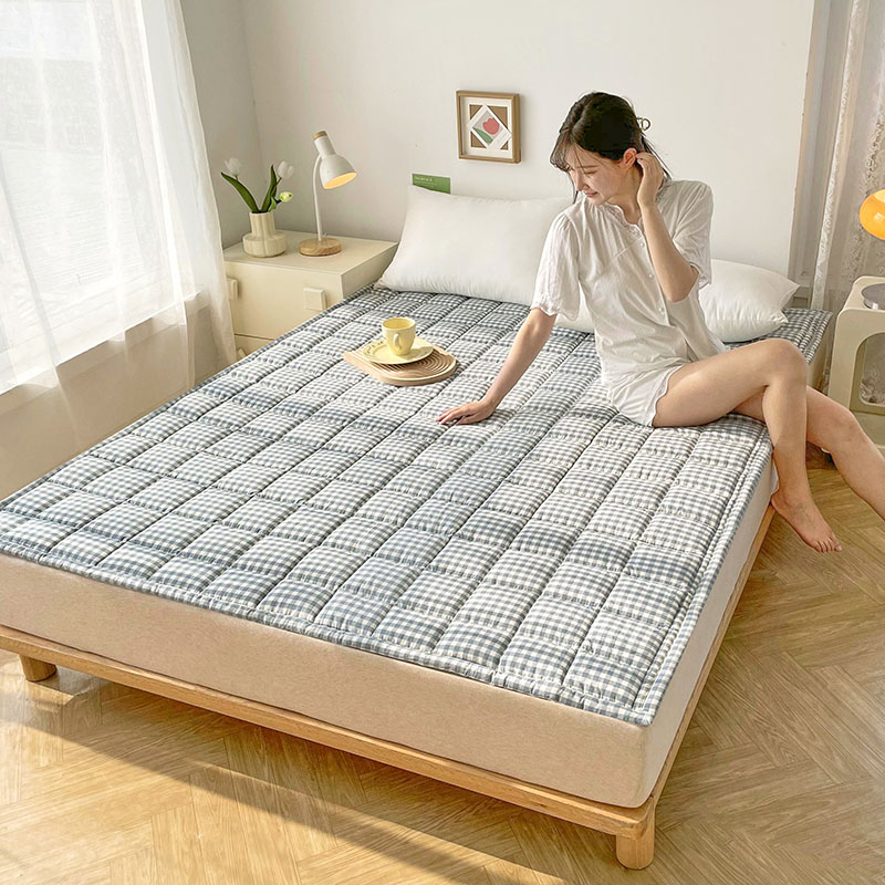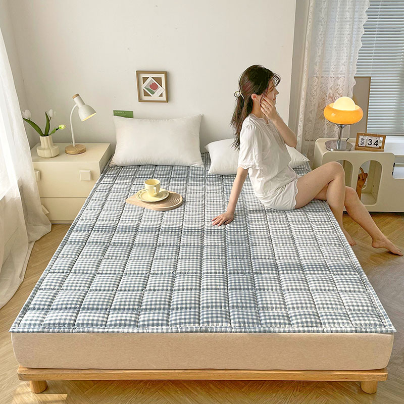 • 91家纺网 家纺一手货源 找家纺 丽诺床垫 2025新款亲肤舒适全棉纯棉色织棉花床褥床垫-少女粉 蓝小格