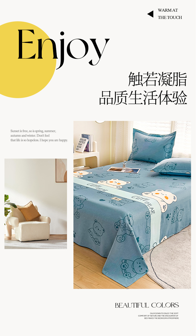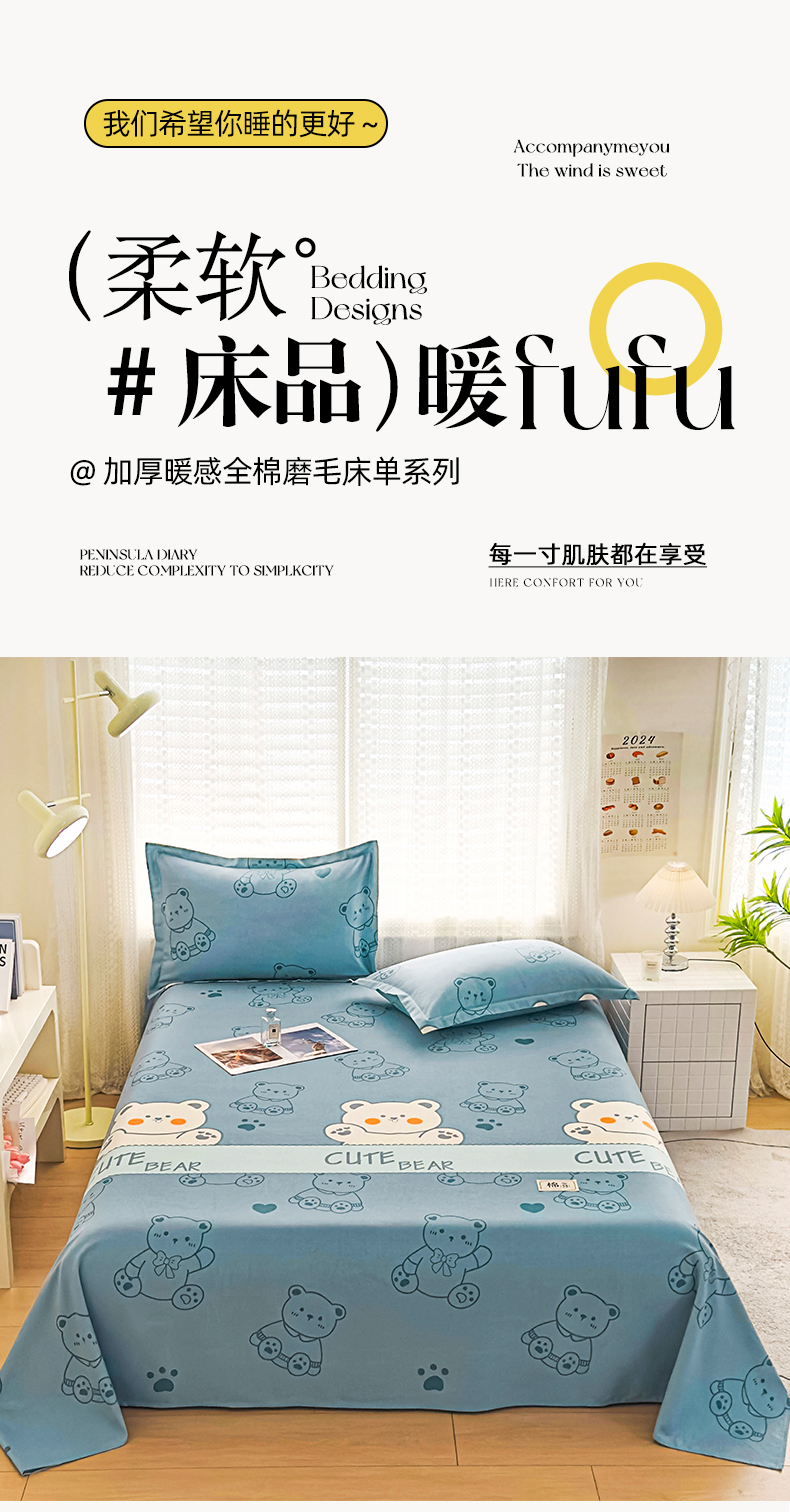 • 91家纺网 家纺一手货源 找家纺 丝芙妮家居(原乐视家纺) 2025春夏新款全棉纯棉混纺云糯棉双层纱单床单 床单单件 淘气熊