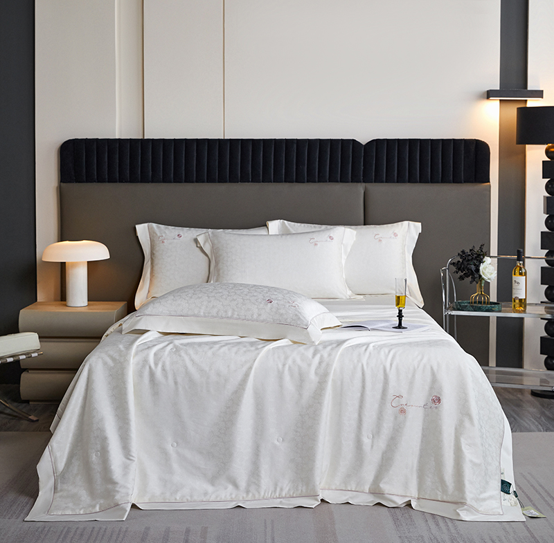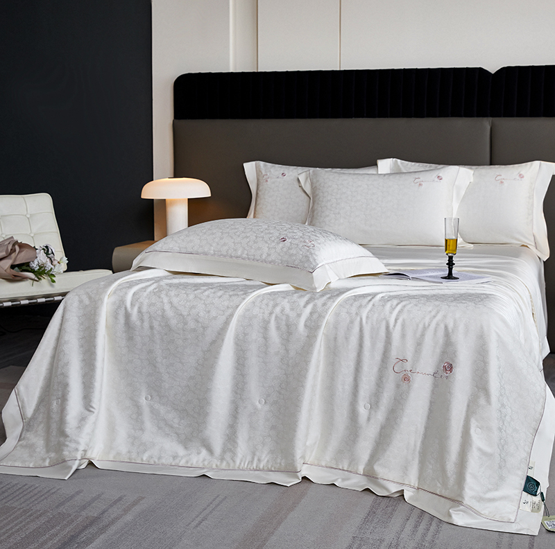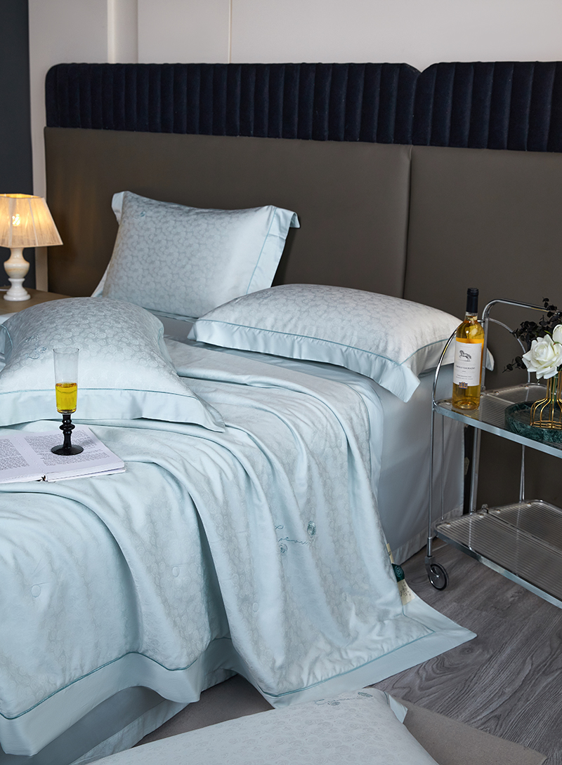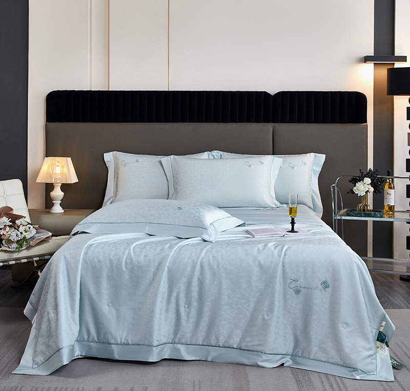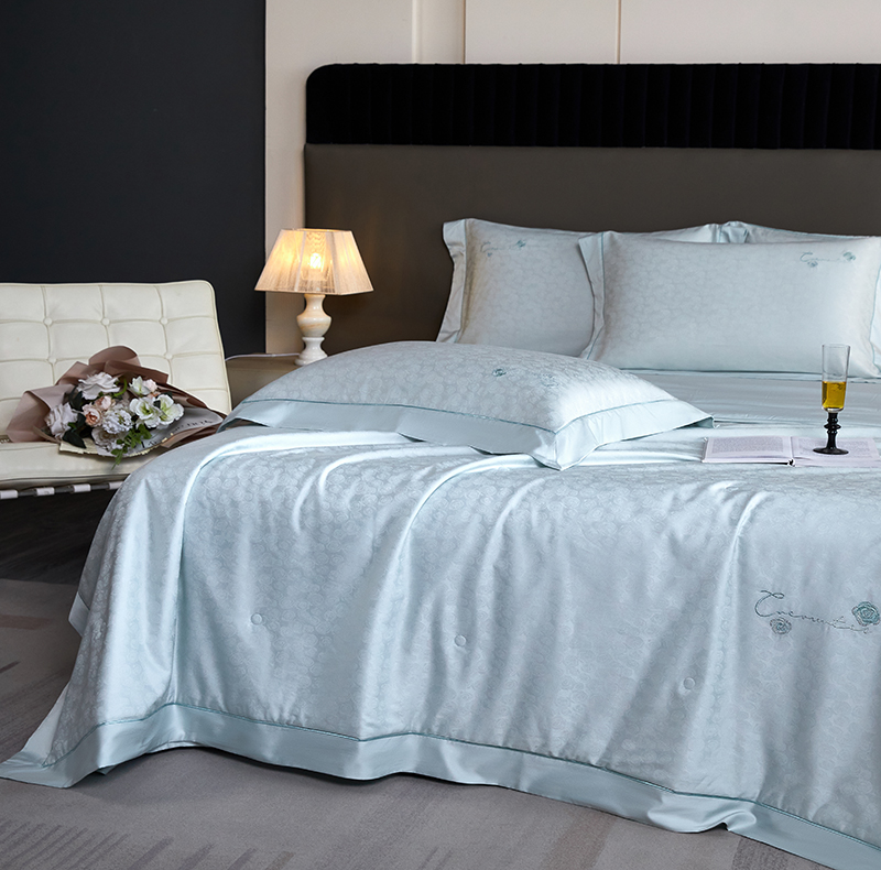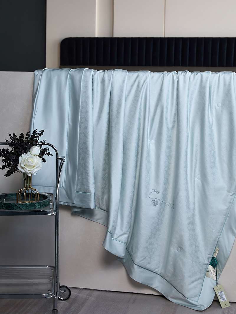 佳汐蓝家纺 2025新款60支高密提花夏被夏凉被空调被四件套-御玫瑰提花夏被系列 御玫瑰-冰蓝