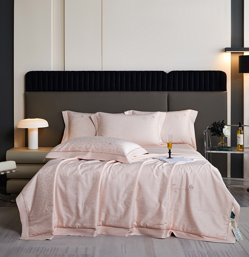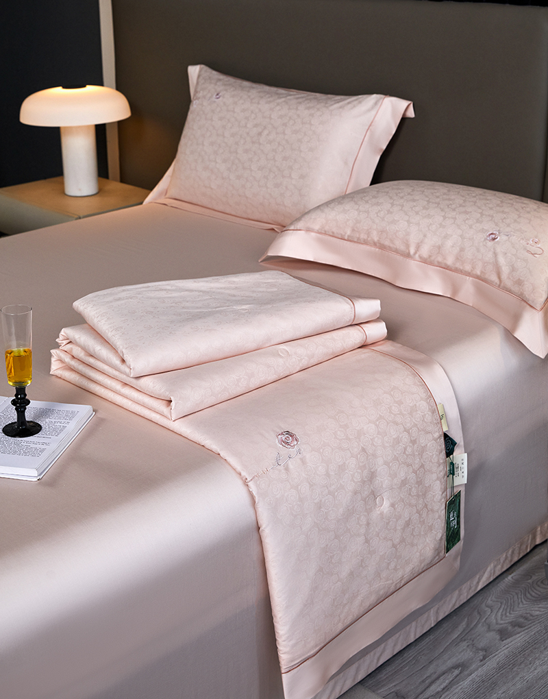 (总)佳汐蓝家纺 2025新款春夏新品TENCEL兰精天丝四件套绣花系列,花颜如梦·珍珠粉,花颜如梦·珍珠绿