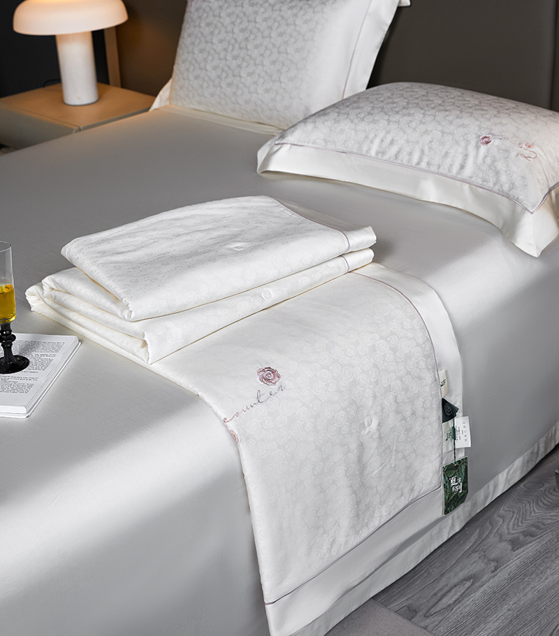 (总)佳汐蓝家纺 2025新款100支贡缎提花全棉刺绣婚庆四件套-繁花佩影,繁花佩影