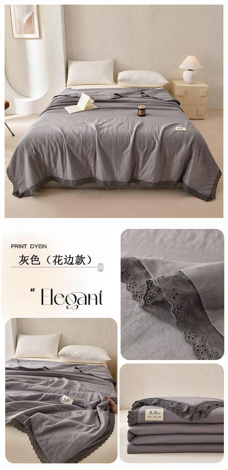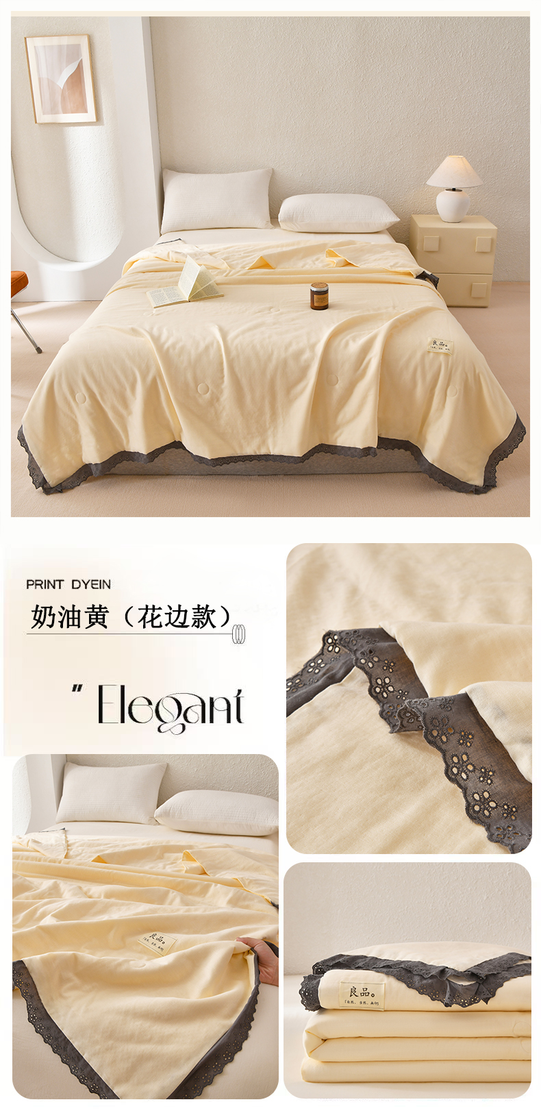 商品名称:金艾草 2025新款纯棉纱布棉花单夏被夏凉被空调被 奶油黄(花边款)