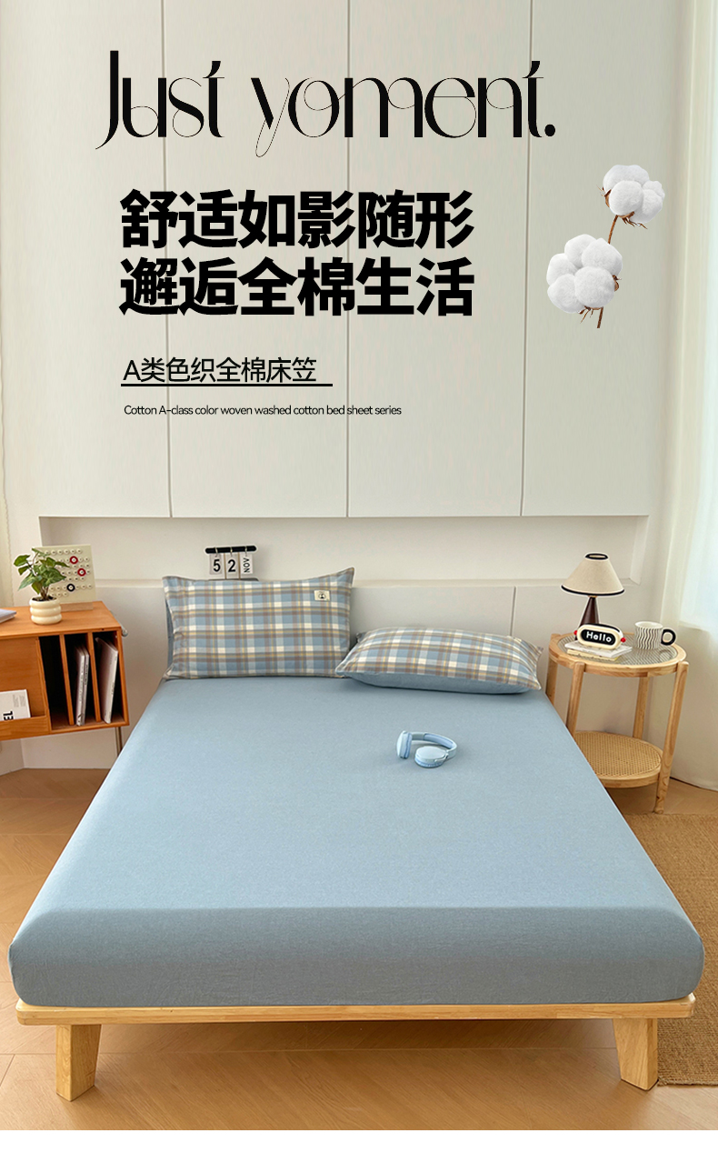 商品名称:(总)2025新款全棉色织水洗棉床笠单件防滑套四季通用