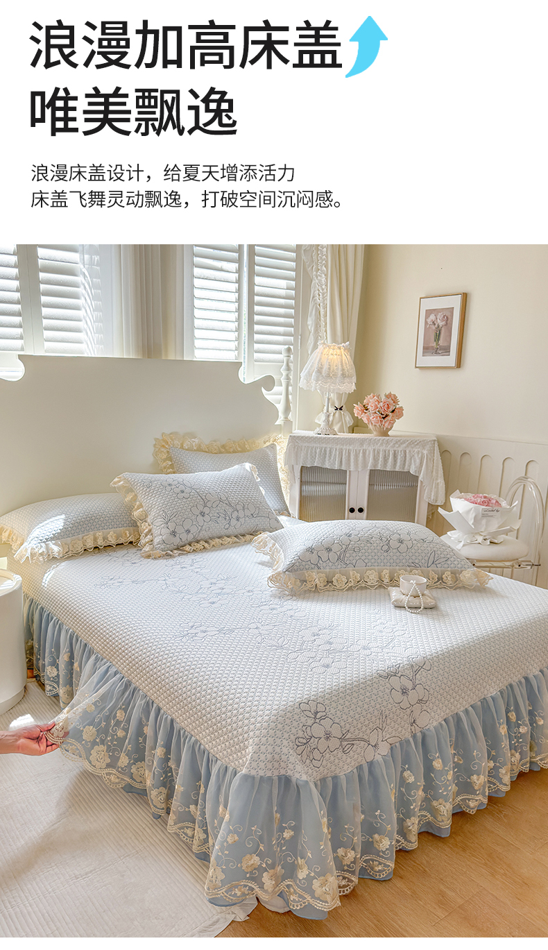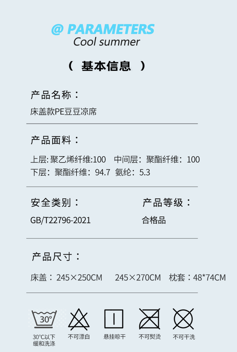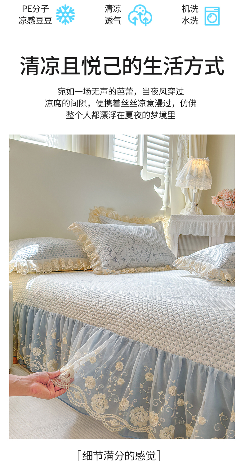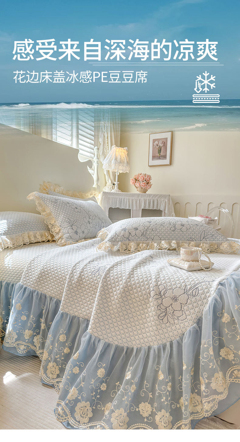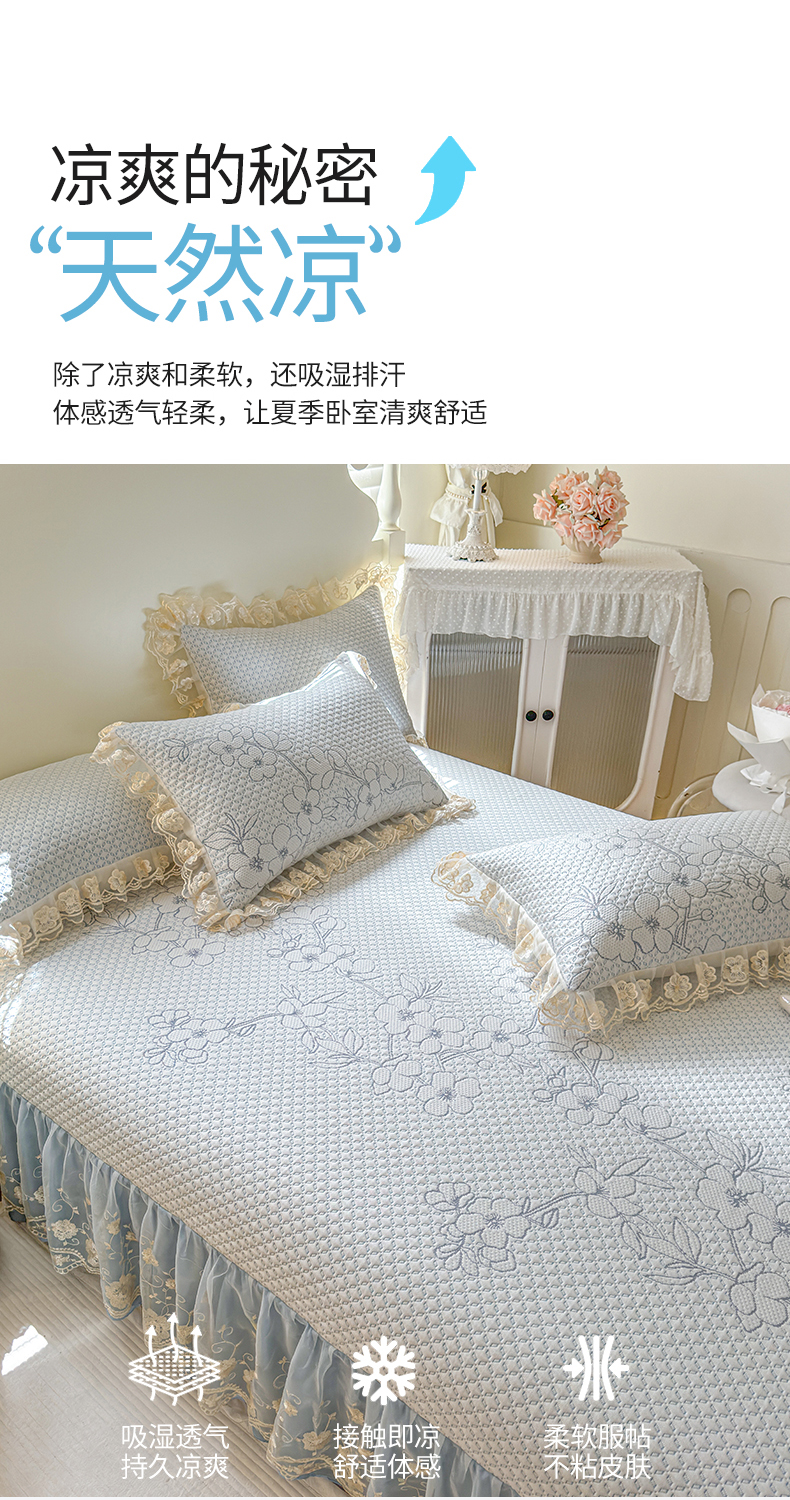 商品名称:网红馆(ck家纺) 2025新款PE冰席床盖三件套 蓝