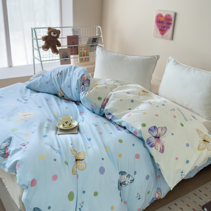 当前位置: 91家纺网 > 商品网购 > 床品套件 > 四件套 > 全棉普通四件套 > 新款12868全棉学生宿舍三件套卡通纯棉四件套 蝶舞-AB