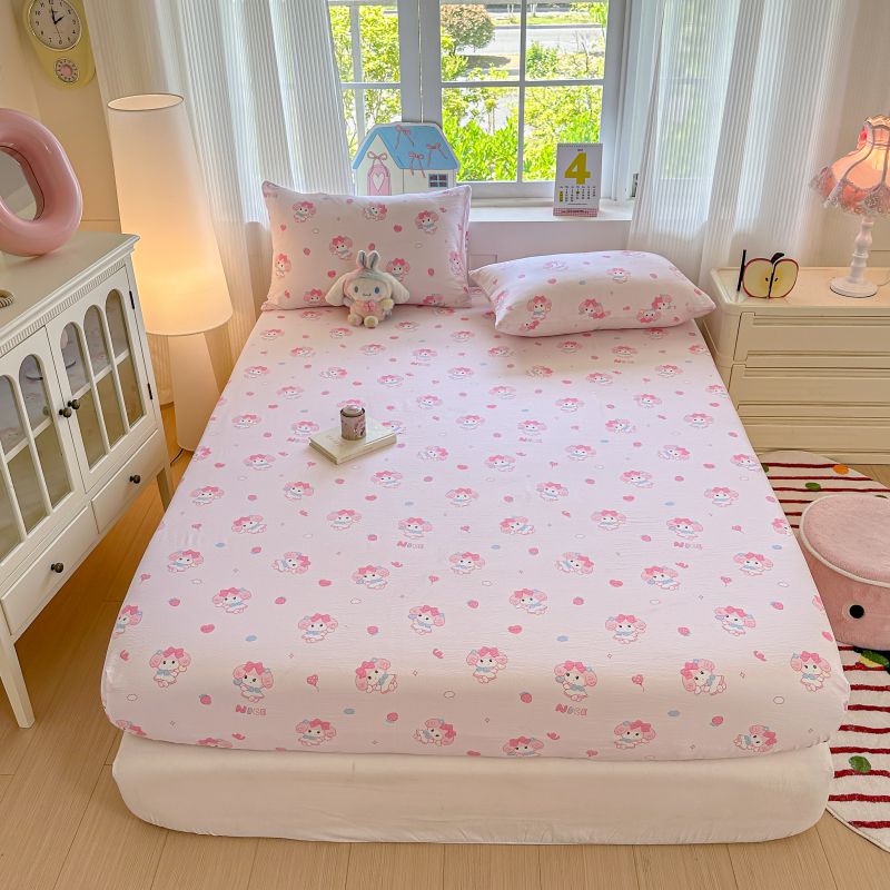 • 91家纺网 家纺一手货源 找家纺 温眠家纺 2025春夏新款A类云感棉双层纱床笠单床笠枕套三件套 浪漫邂逅