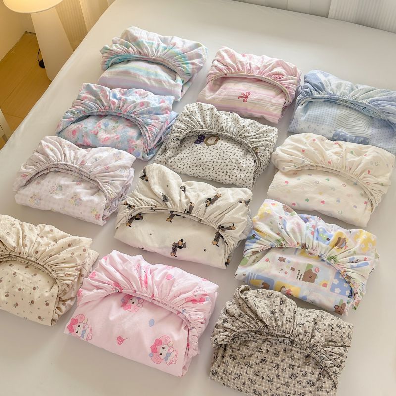 (总)温眠家纺 2026新款古法水洗棉加厚高克重双层纱单床笠床笠单件单品床笠,条纹南瓜,彩波波,蛋糕小猫,扶桑花未落,花韵,绮梦花间,素影,挽星入梦,汪星人,星星人,樱之桃桃,云间花述,织梦,紫菀