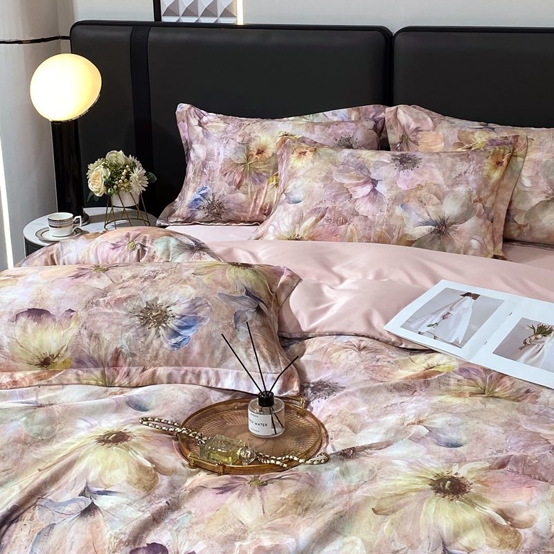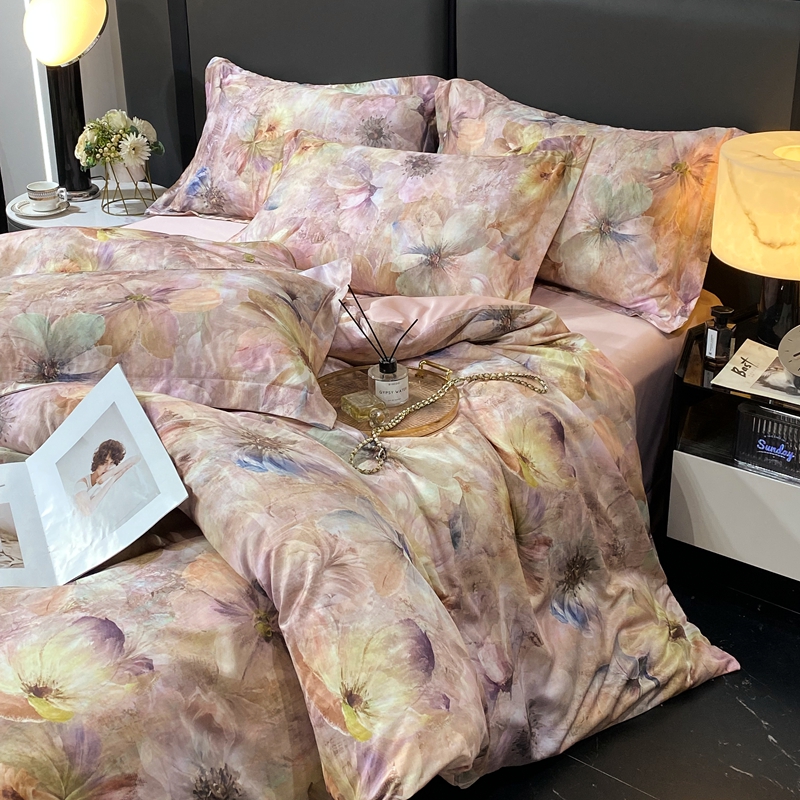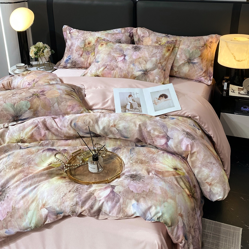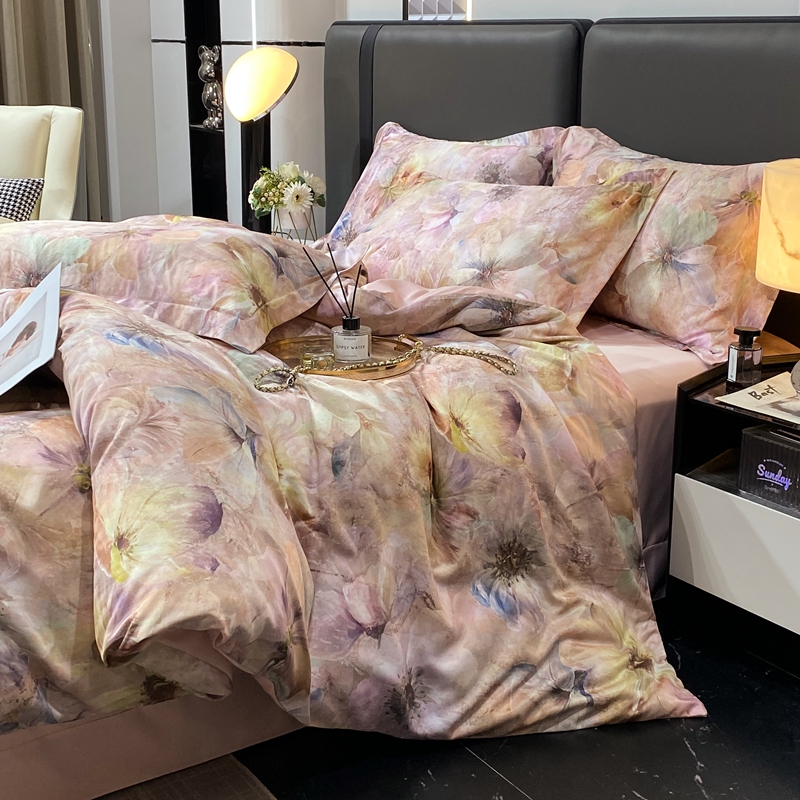 (总)大麦乐田 2025新款珍珠棉大版印花四件套,境澜-玉,若芸-紫,境澜-灰,花涧-粉,境涧-紫,芳华-紫,若芸-粉,芳华-黄,花涧-桔,梦谷-粉,梦谷-绿