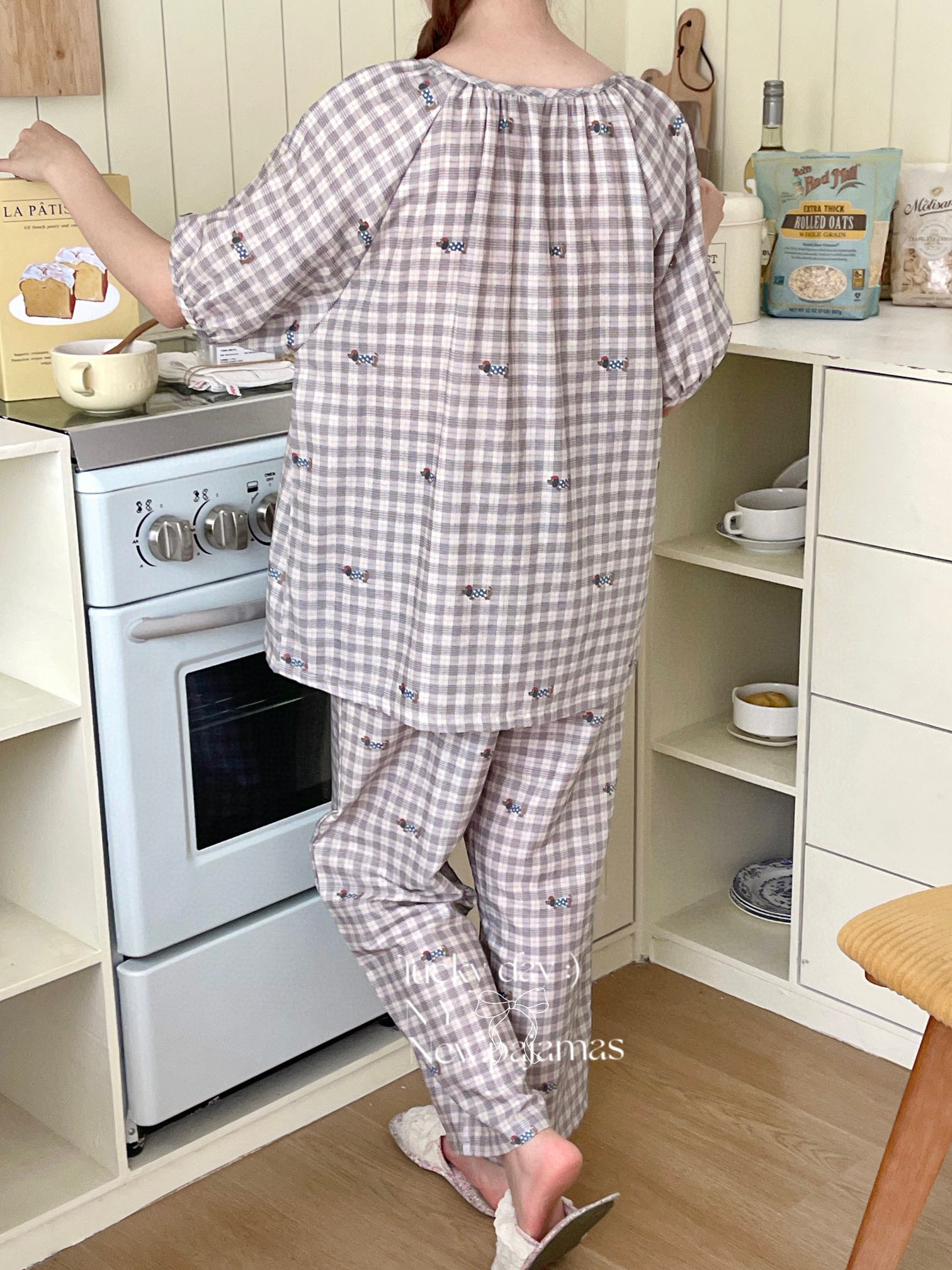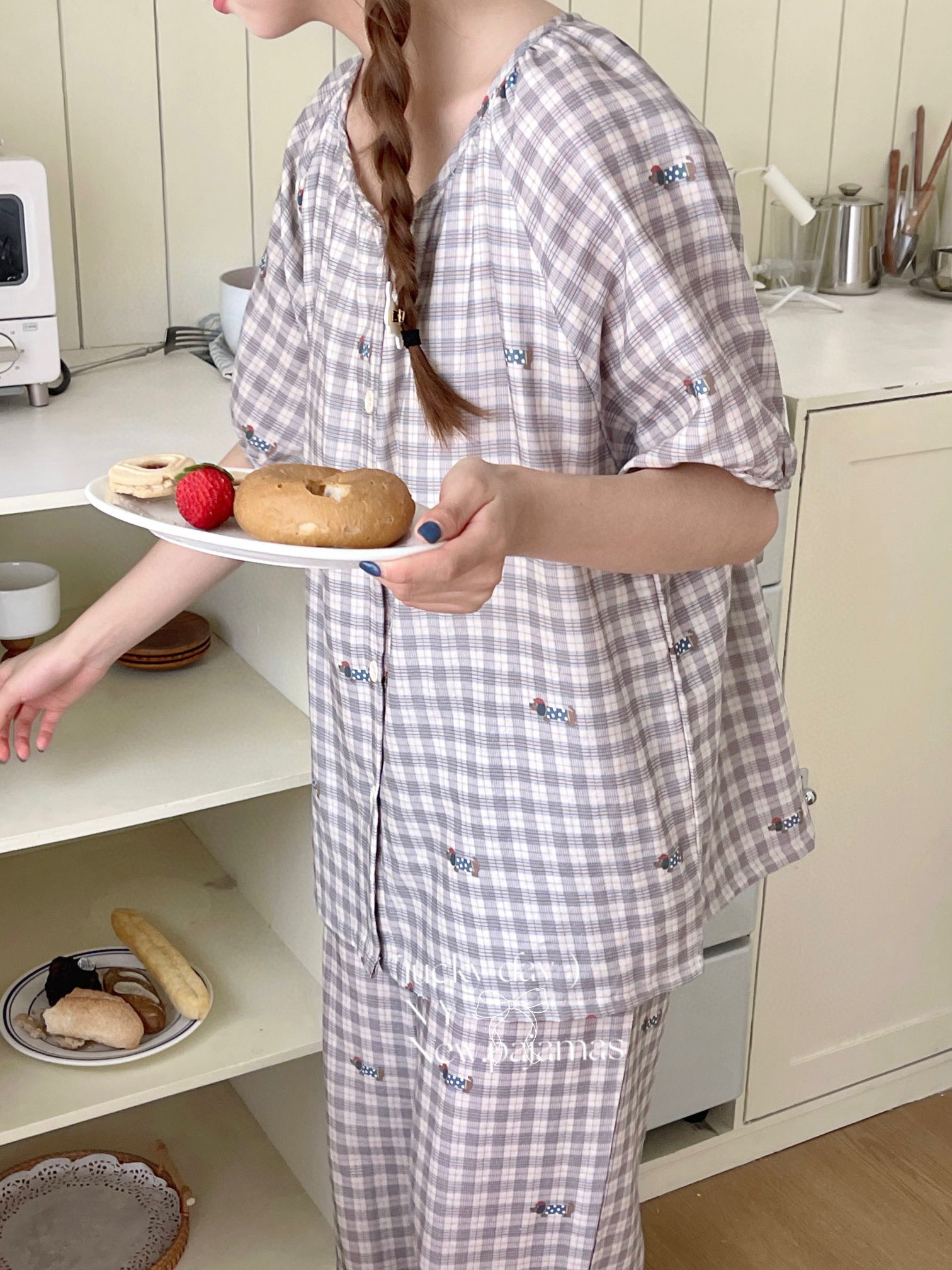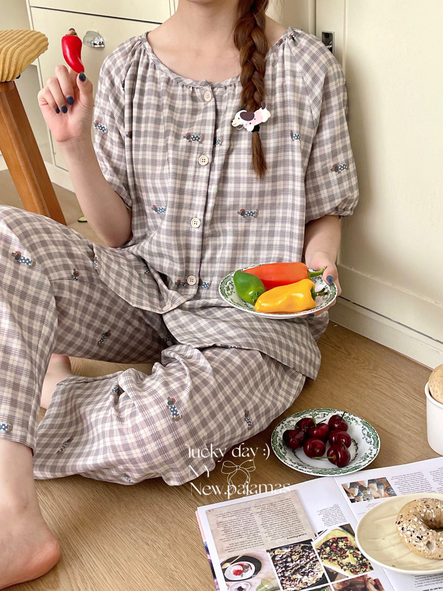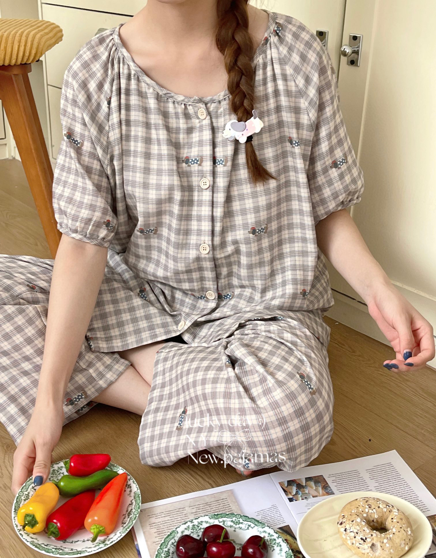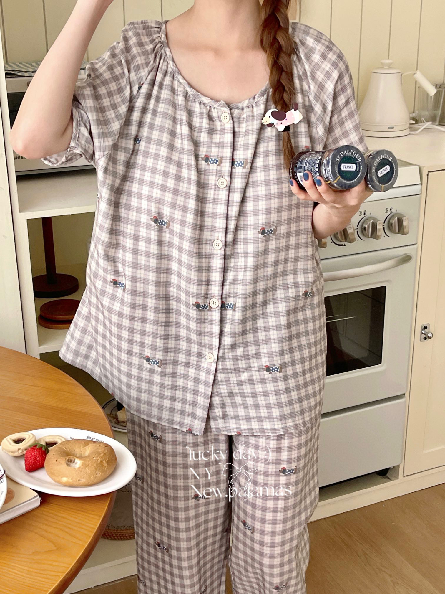 (总)纽约生活 2025新款绉布圆领开扣长袖长裤(会员-5),波比熊,黑碎花猫咪,蝴蝶结粉熊,花花狗,蓝碎花,塞纳花房