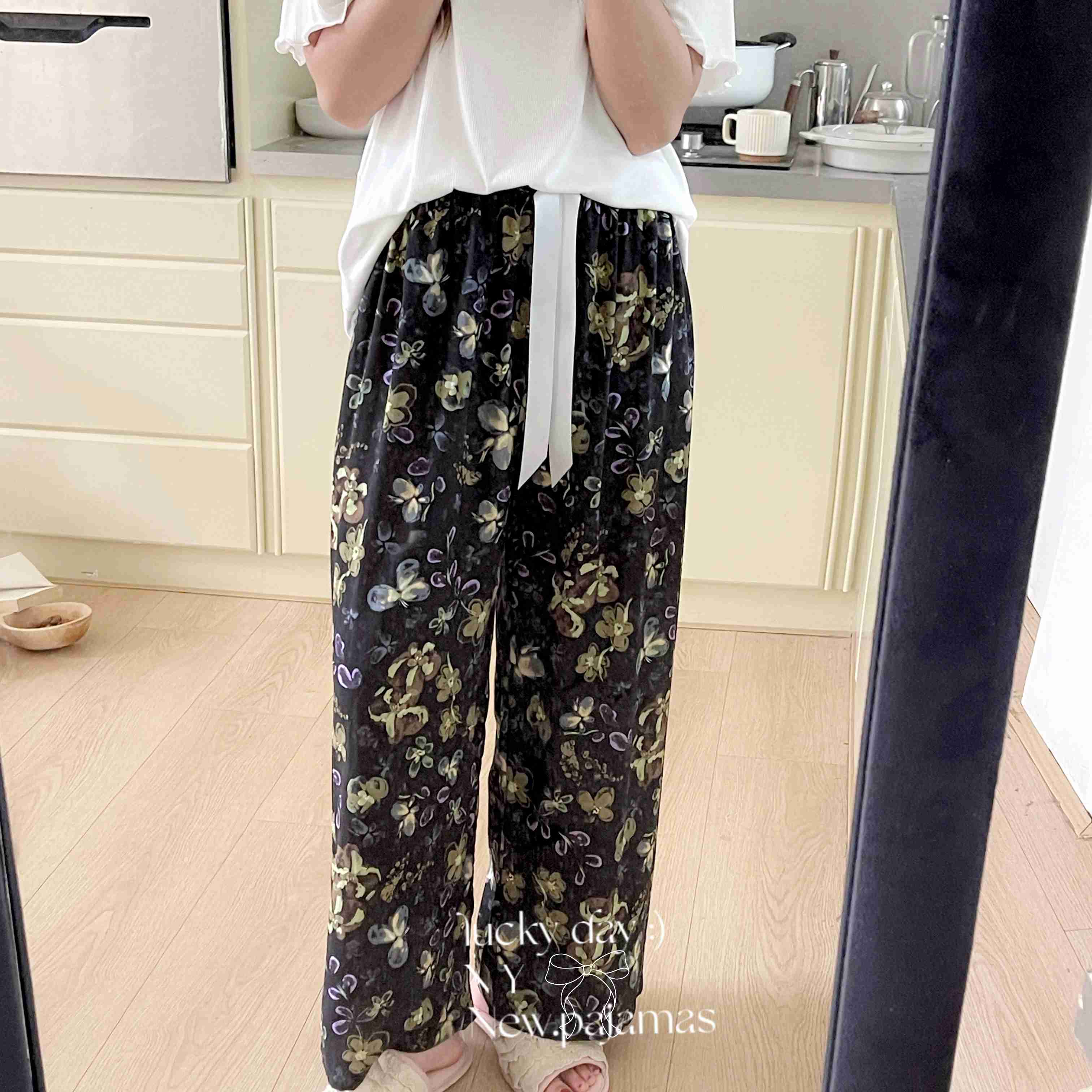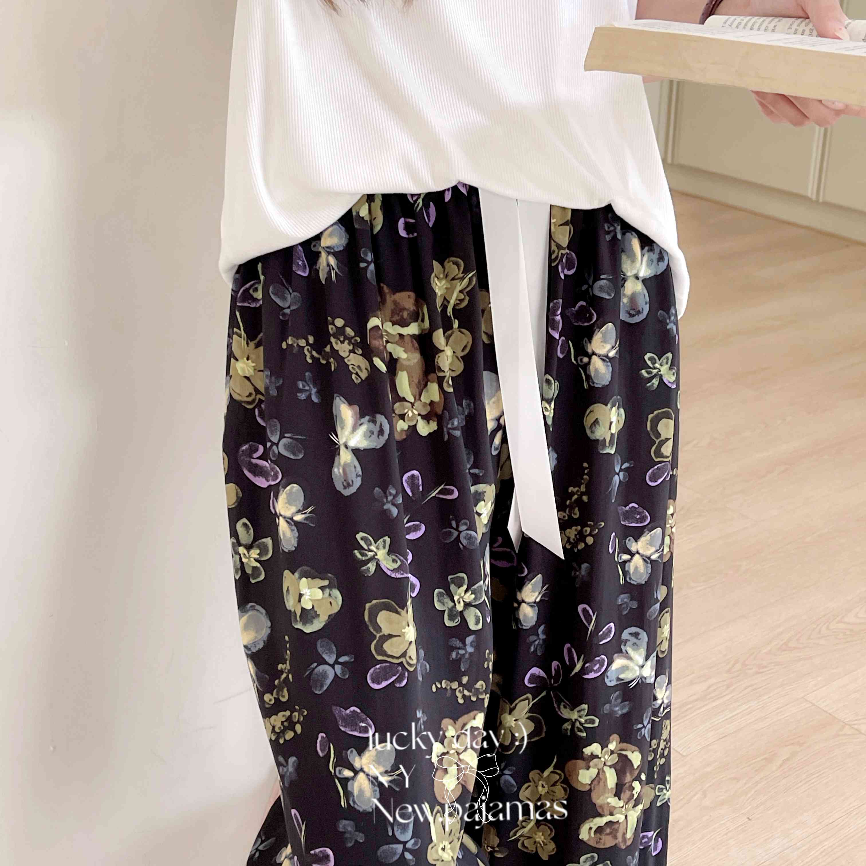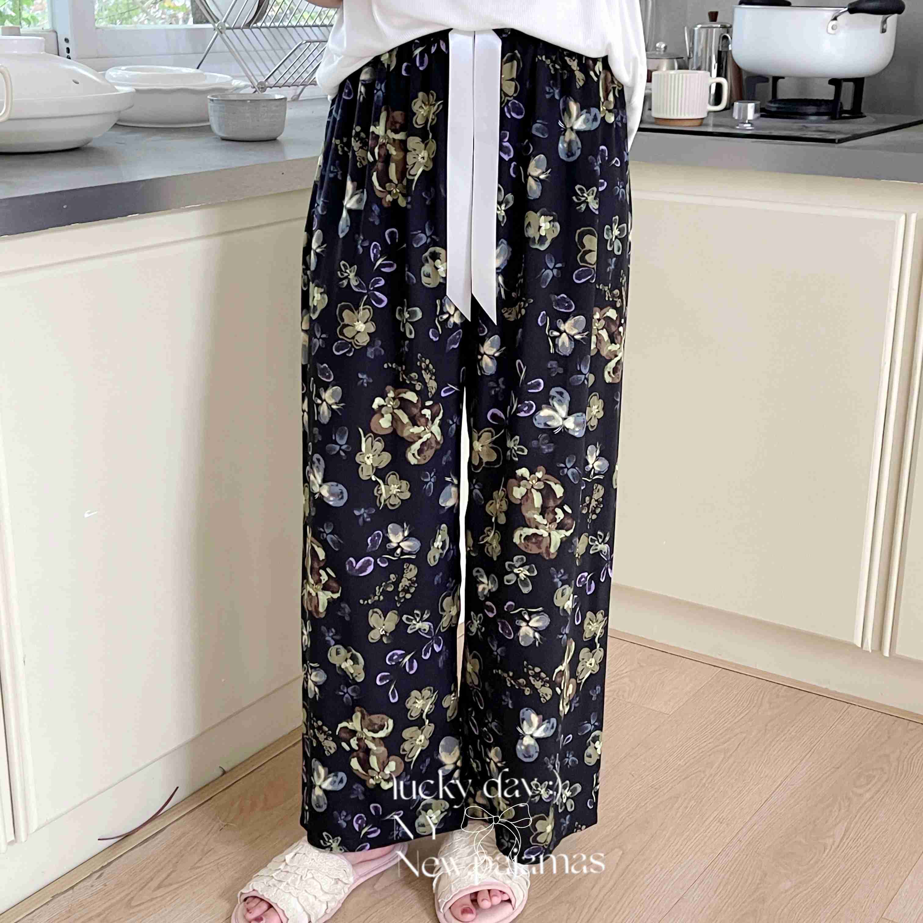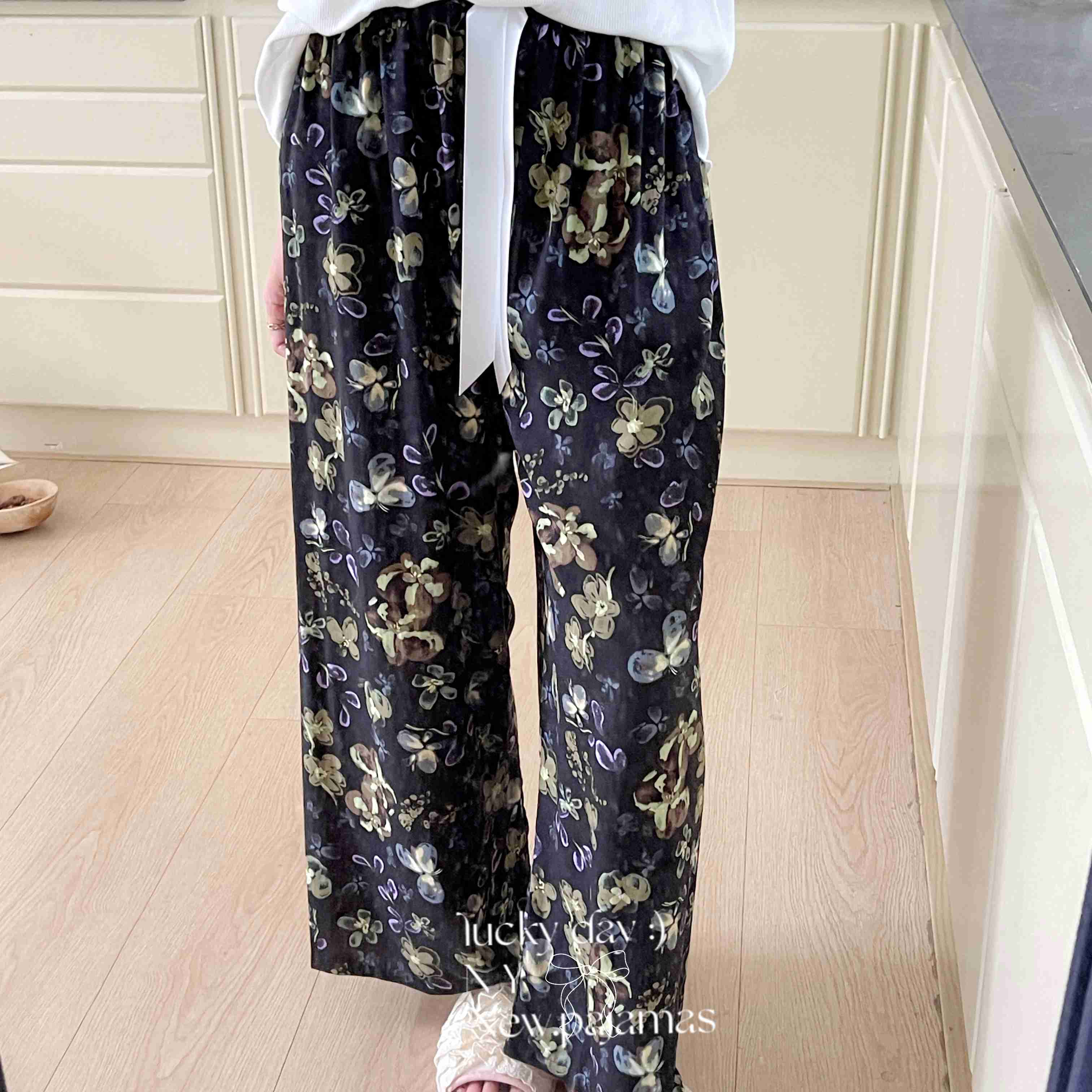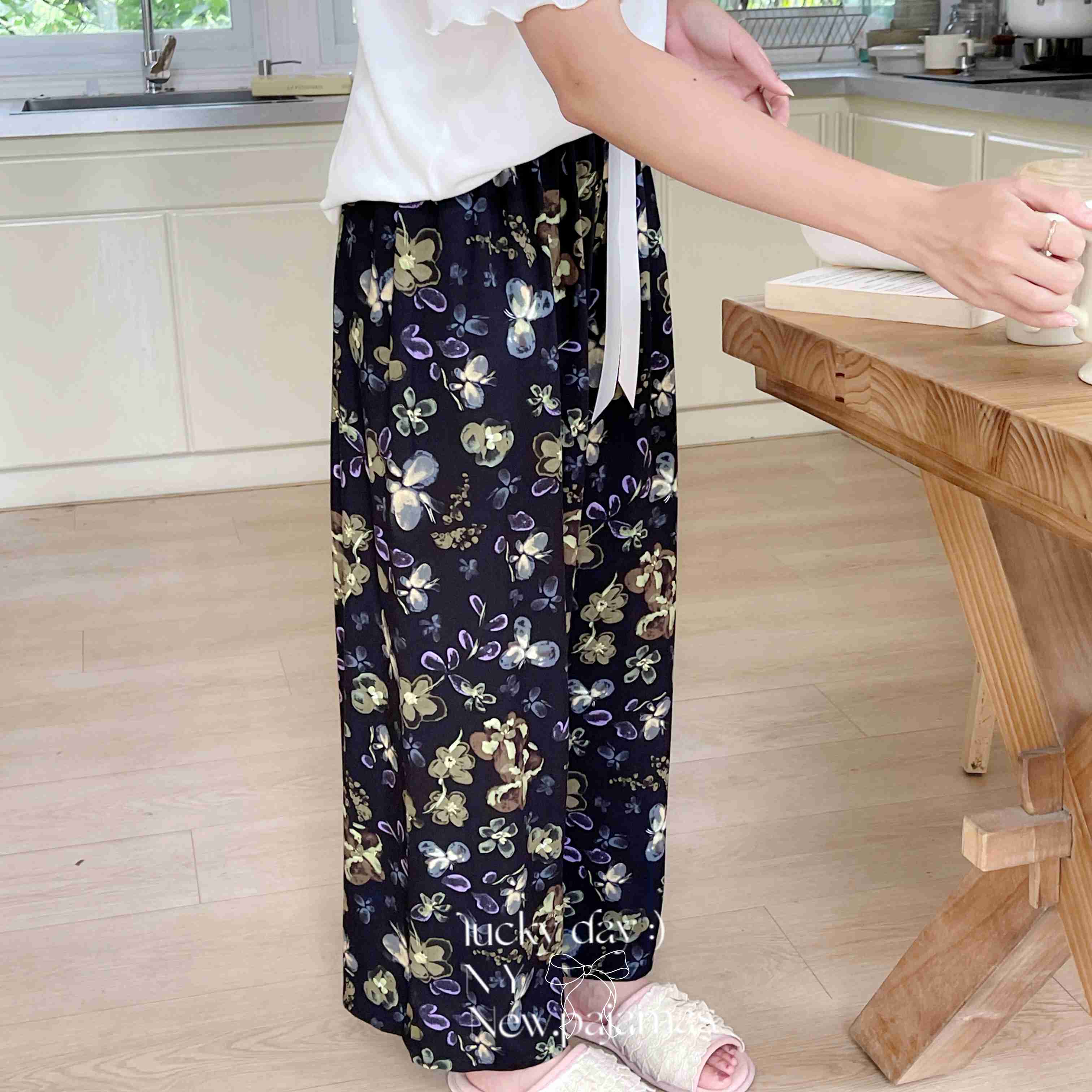 商品名称:纽约生活 2025新款人棉阔腿裤 花蝶梦