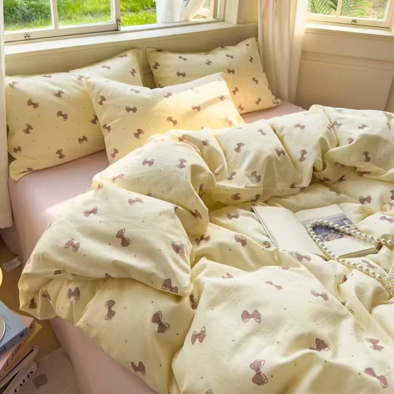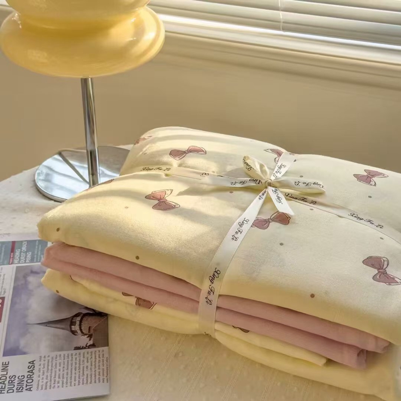栩裕纺织 2025新款全棉双层纱四件套 蝴蝶结