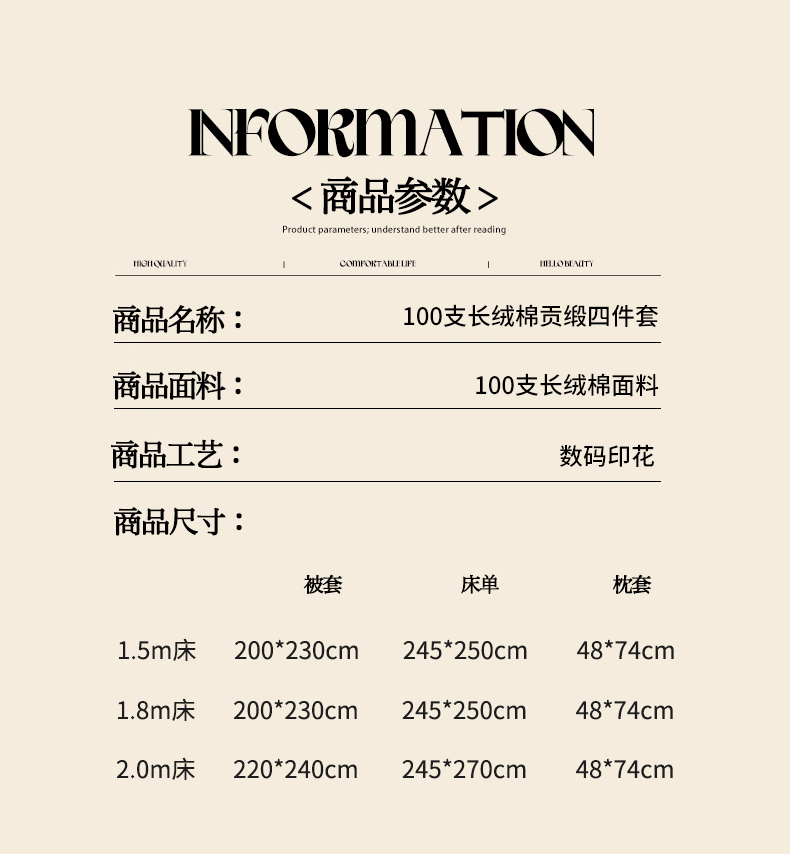 【床笠款】1.5四件套-被套200x230 | ¥190.00 |