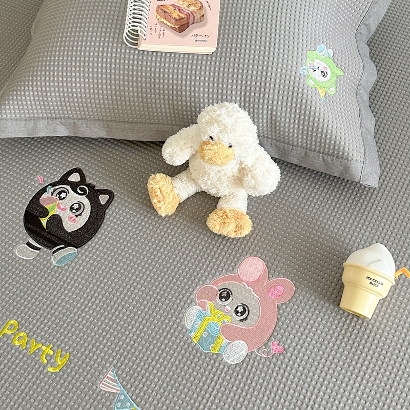 (总)柚子YOUTH 2025新款全棉双层纱贴布绣四件套,棒球熊猫,贝雷帽,冰淇淋小熊,格子玩偶,碎花小兔,小黑猫