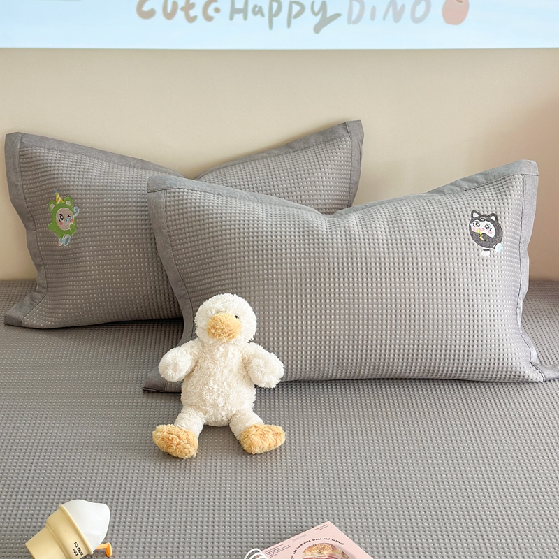 (总)柚子 2025春夏新款全棉纯棉双层纱毛巾绣四件套,河马,美蒂狗,麋鹿,苹果狗,水母,椰子卡皮巴拉