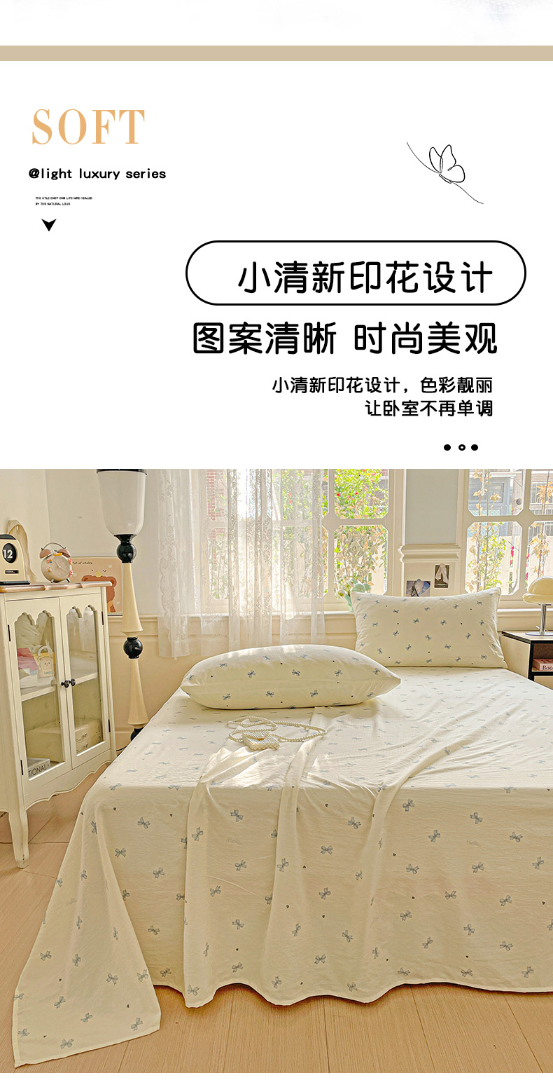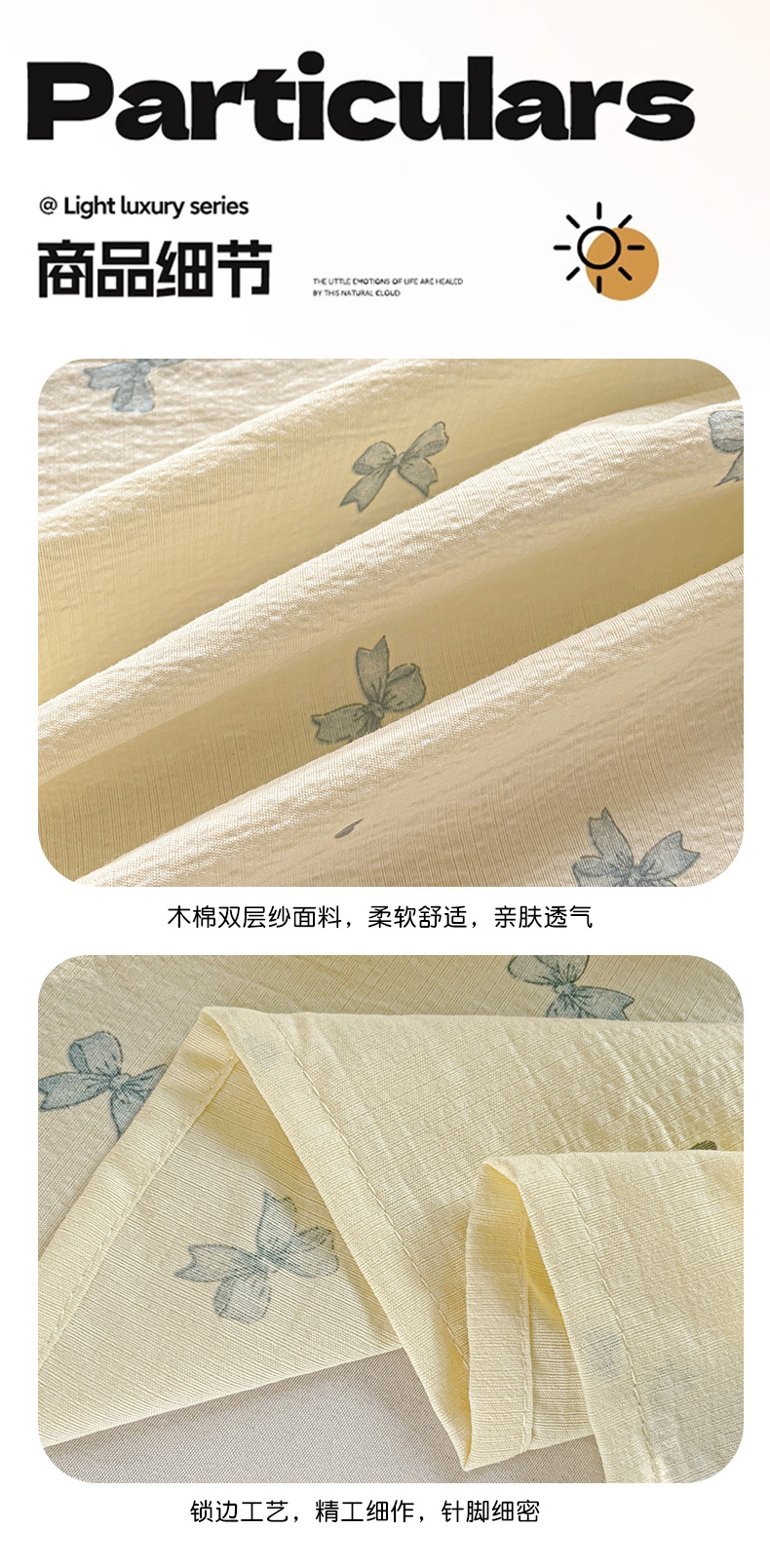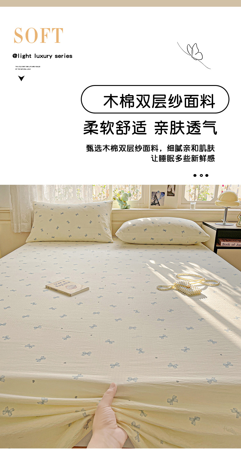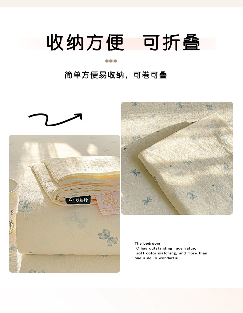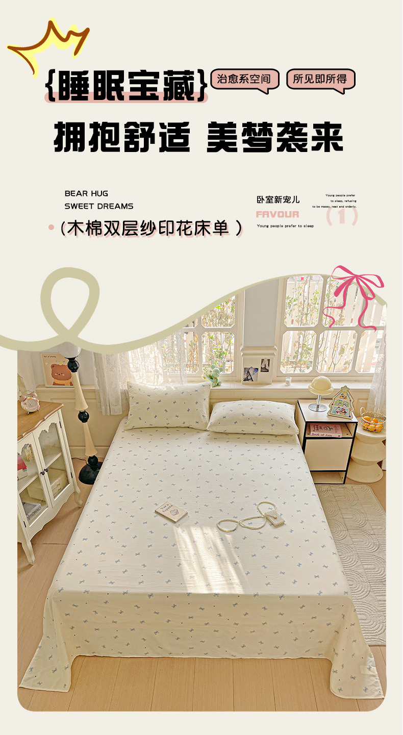 当前位置: 91家纺网 > 商品网购 > 床品套件 > 四件套 > 双层纱四件套 > 暖芯优选 2025新款母婴级ins小清新双层纱印花床单枕套三件套(提供买家秀) 米黄蝴蝶结