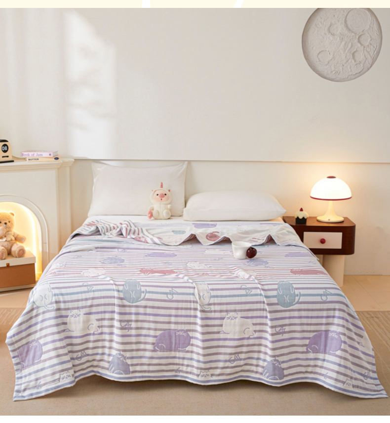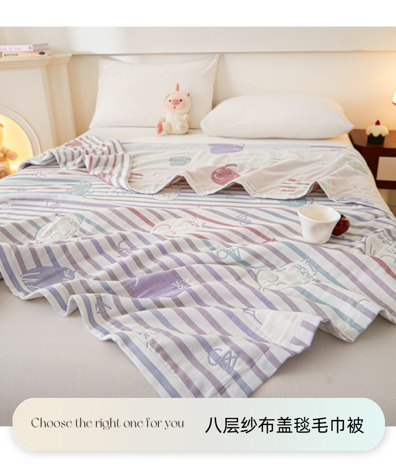 悦然毛巾被 2025新款八层纱布盖毯毛巾被夏被夏凉被空调被 彩虹猫粉