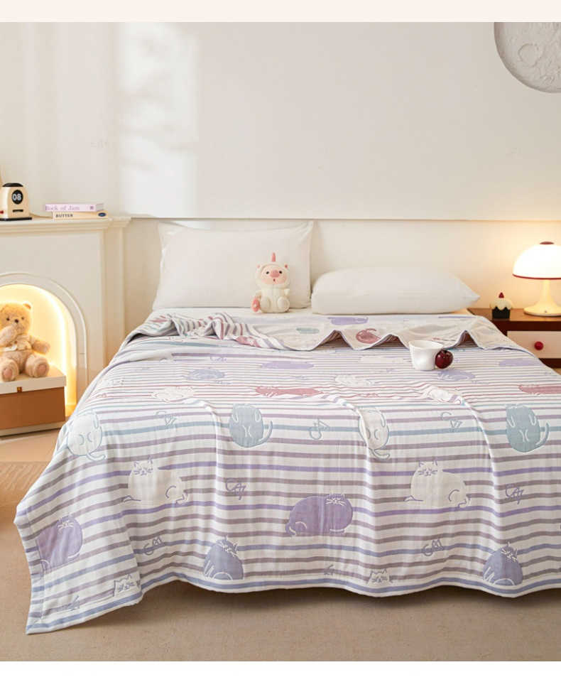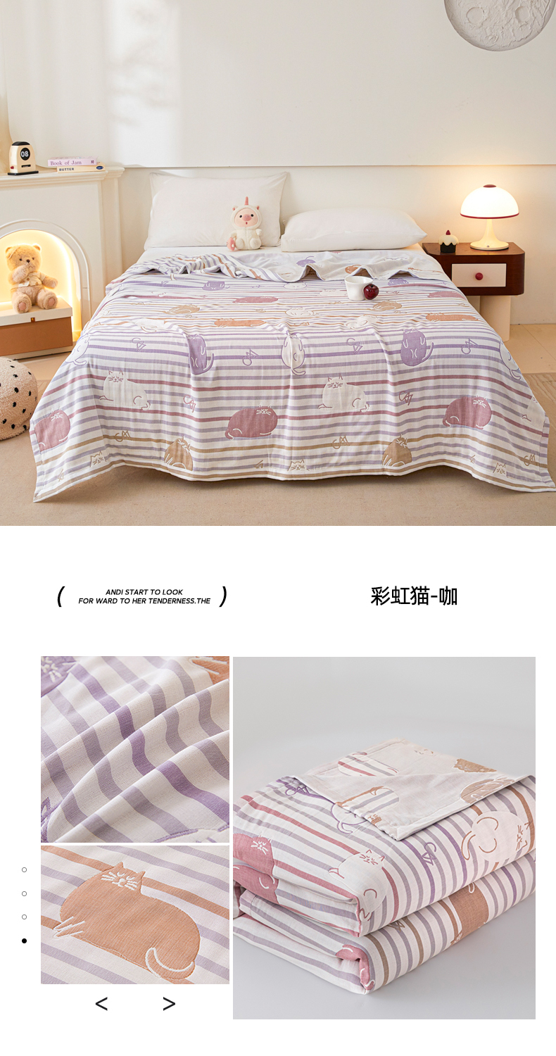 商品名称:悦然毛巾被 2025新款八层纱布盖毯毛巾被夏被夏凉被空调被 彩虹猫粉