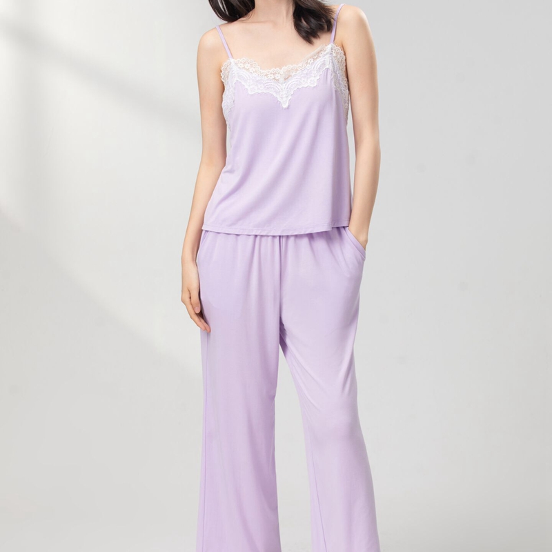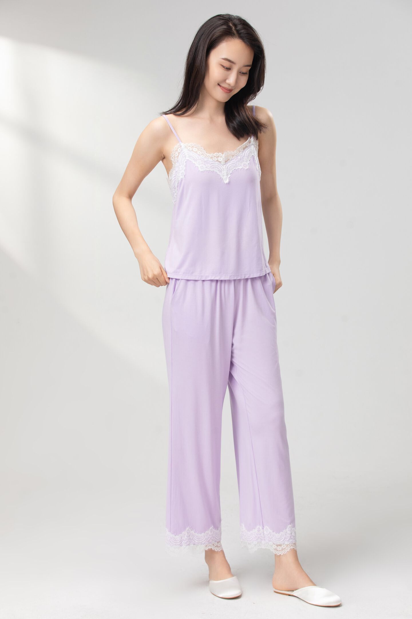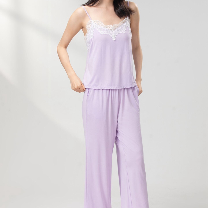 当前位置: 91家纺网 > 商品网购 > 居家日用 > 睡衣/家居服套装 > 妍景2025新款莫代尔吊带长裤套装 紫色
