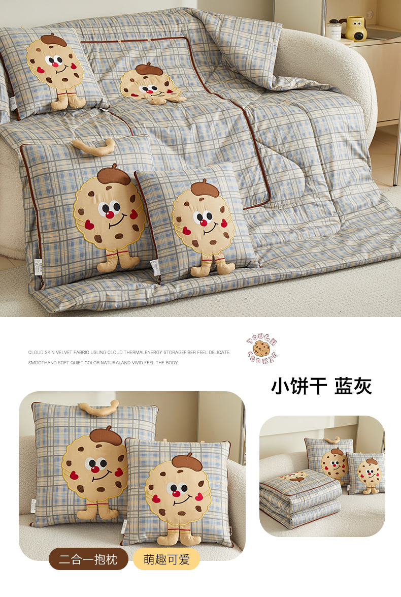 商品名称:宝马家纺(原梦童画) 2025新款全棉四季款小饼干抱枕被 小饼干-蓝灰