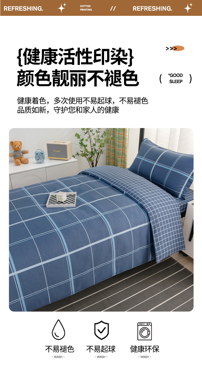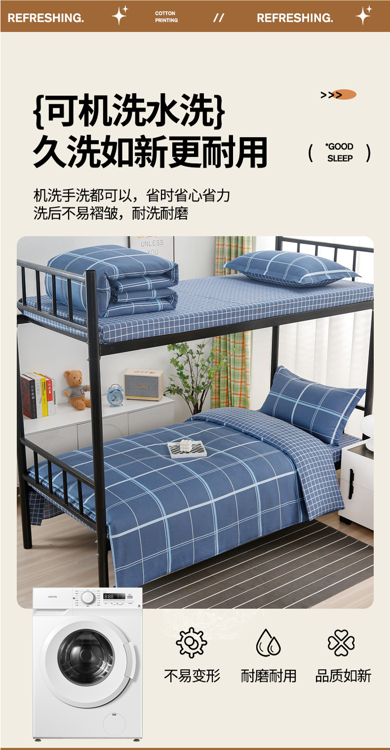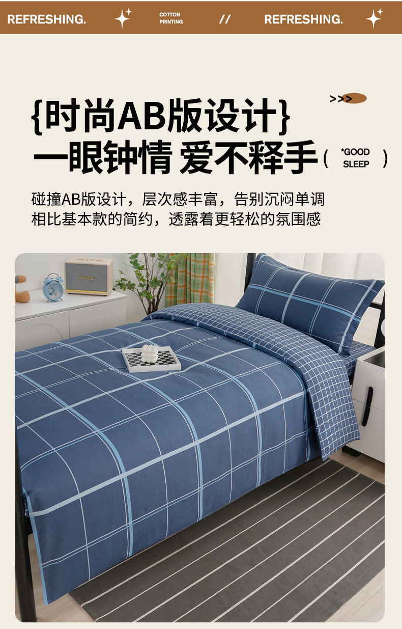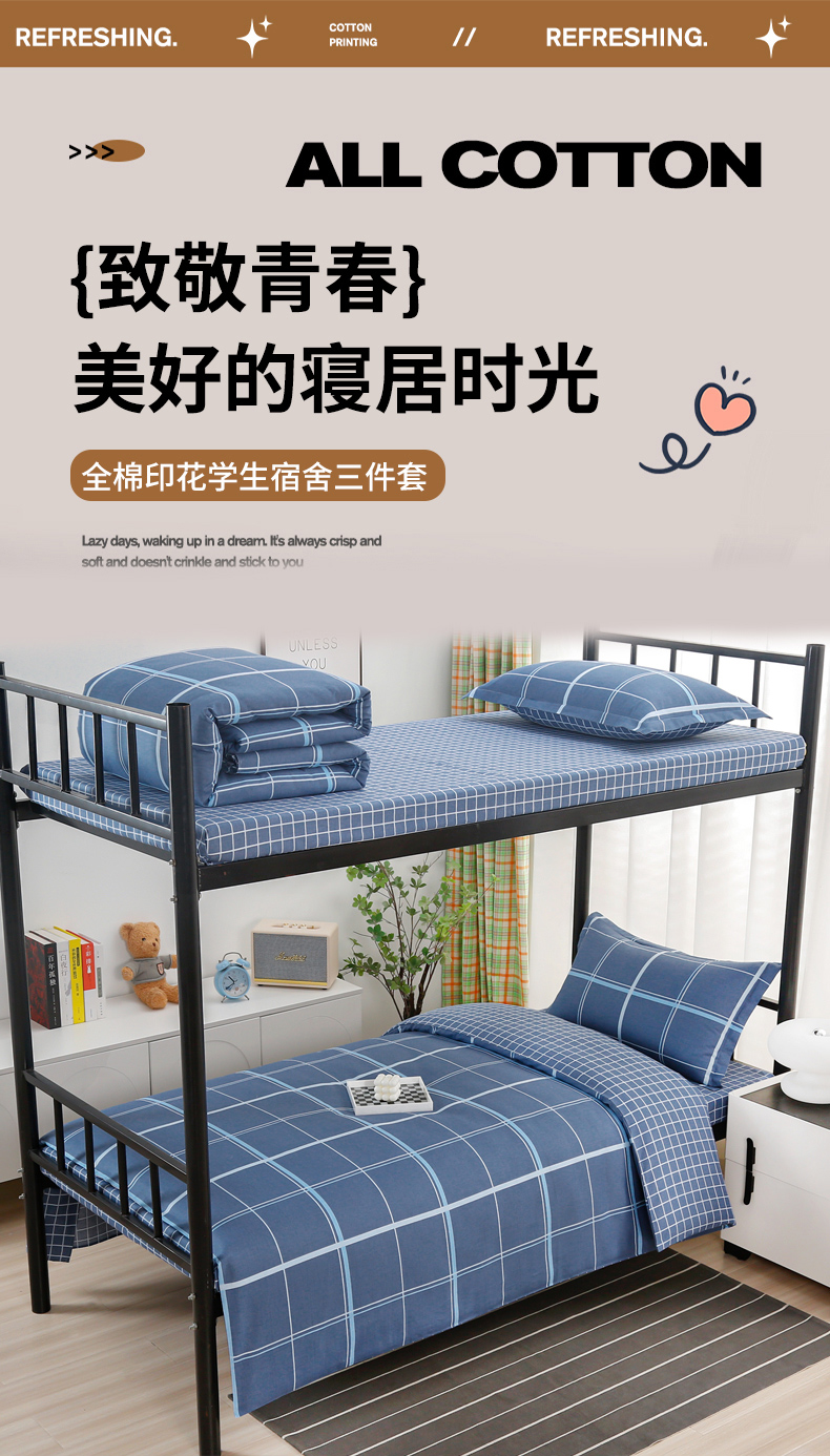 当前位置: 91家纺网 > 商品网购 > 床品套件 > 多件套 > 多件套 > 乐旗家纺 2025新款A类AB版全棉环保印花学生上下铺宿舍三件套六件套 千百度