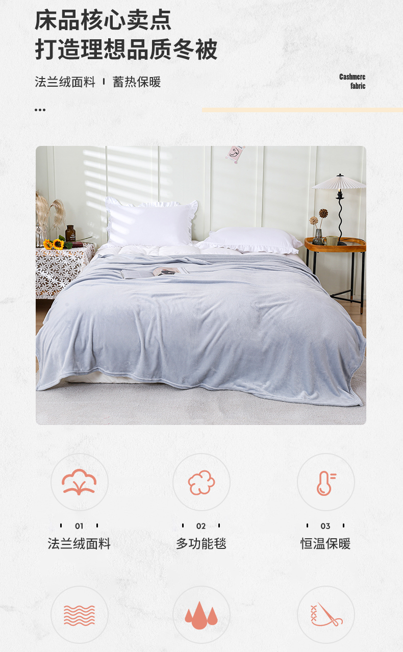 商品名称:(总)胜百毛毯2025新款素色200克法兰绒毯