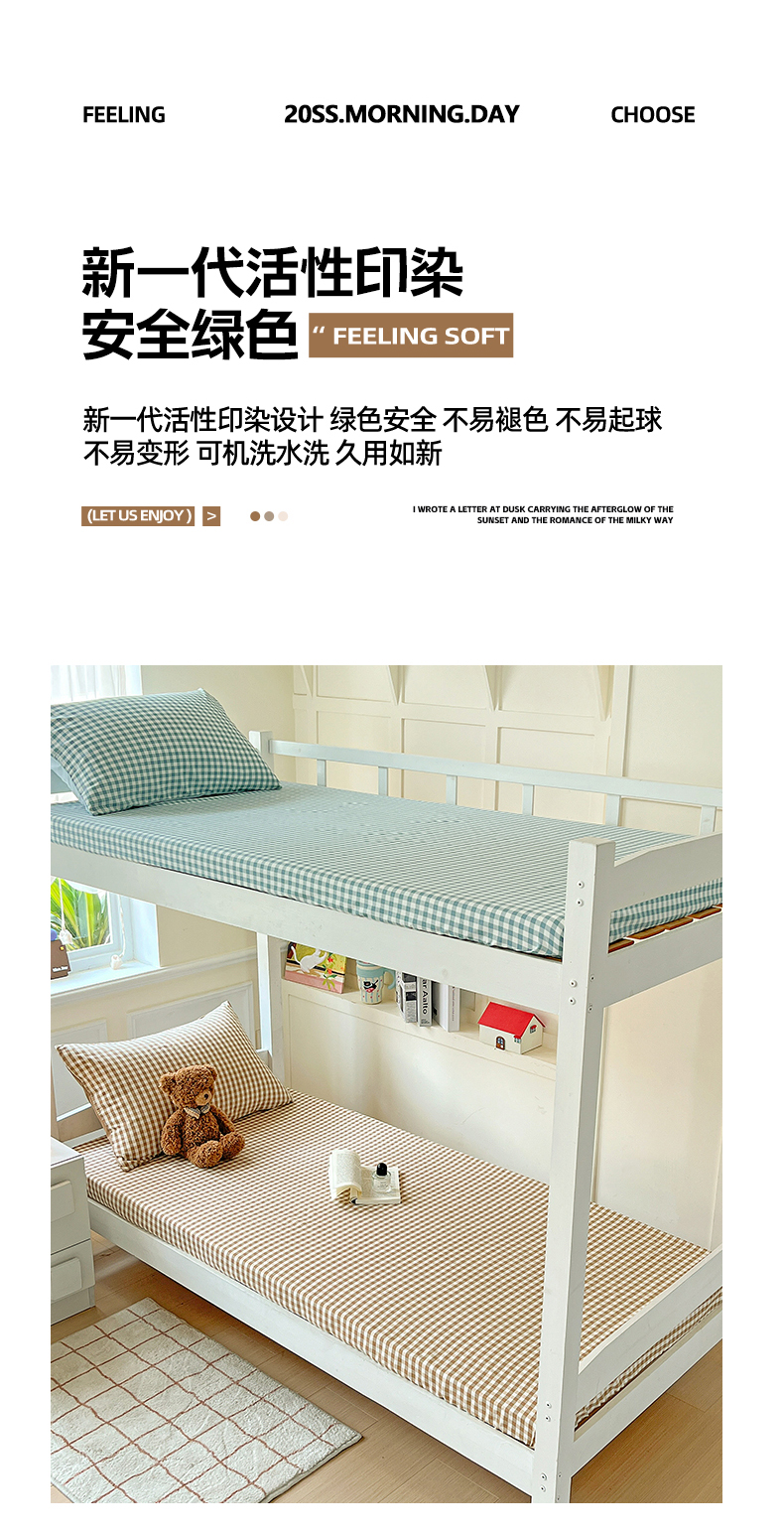 • 91家纺网 家纺一手货源 找家纺 妖妖家纺 2025新款软糯格子学生床笠 栗子布丁